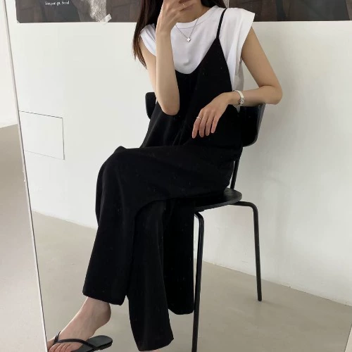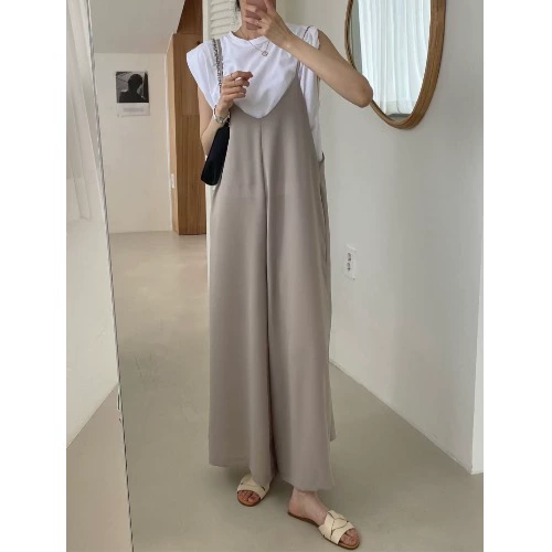 chic U-neck loose casual jumpsuit with spaghetti straps