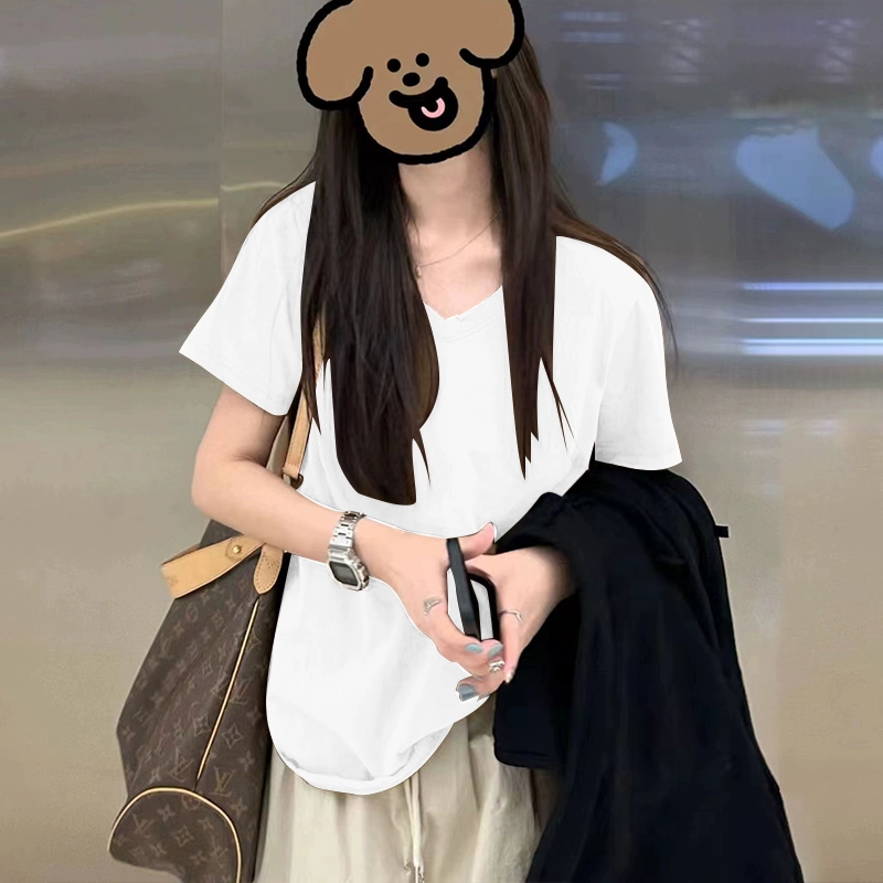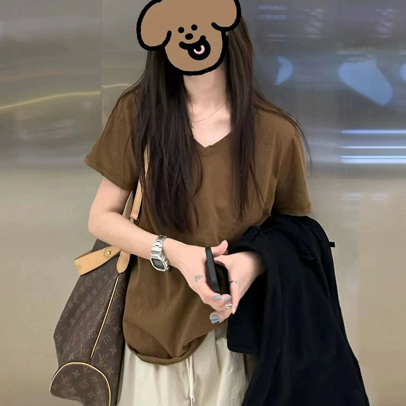 | nameOriginal | chic V-neck retro right shoulder women's summer short-sleeved T-shirt |