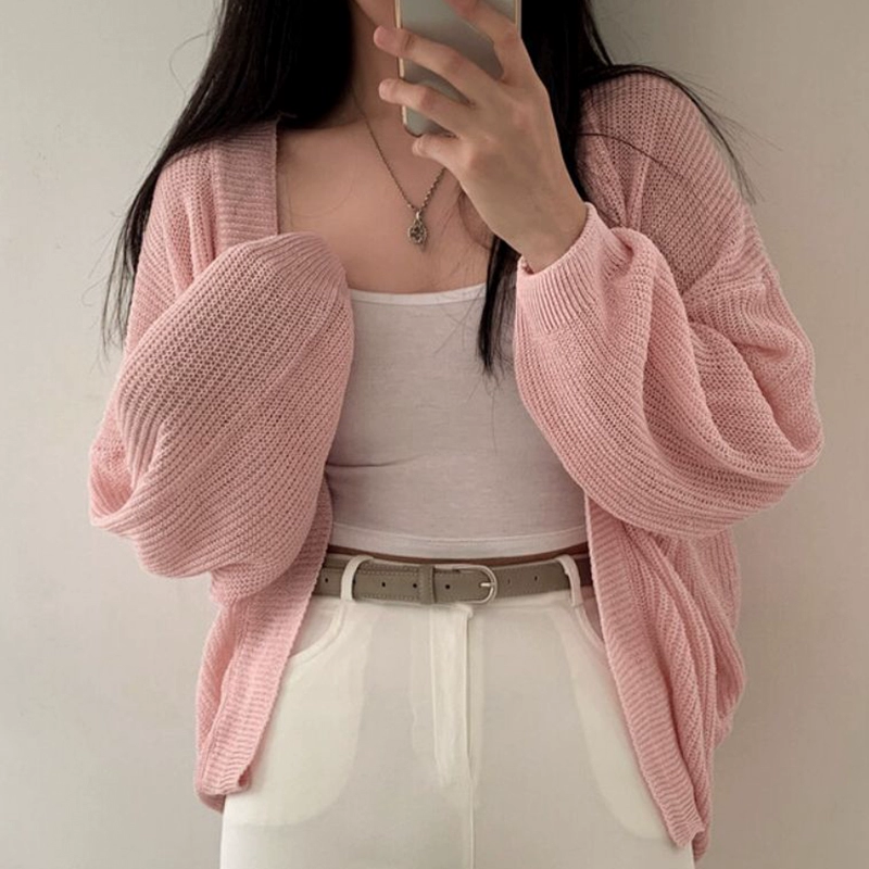 chic V-neck versatile long-sleeved thin knitted cardigan