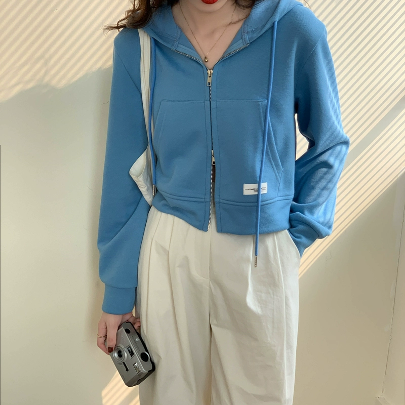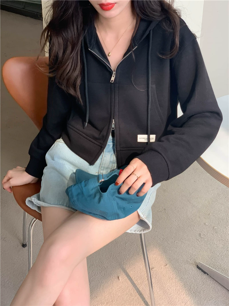 chic zipper jacket spring and autumn short cardigan sweatshirt