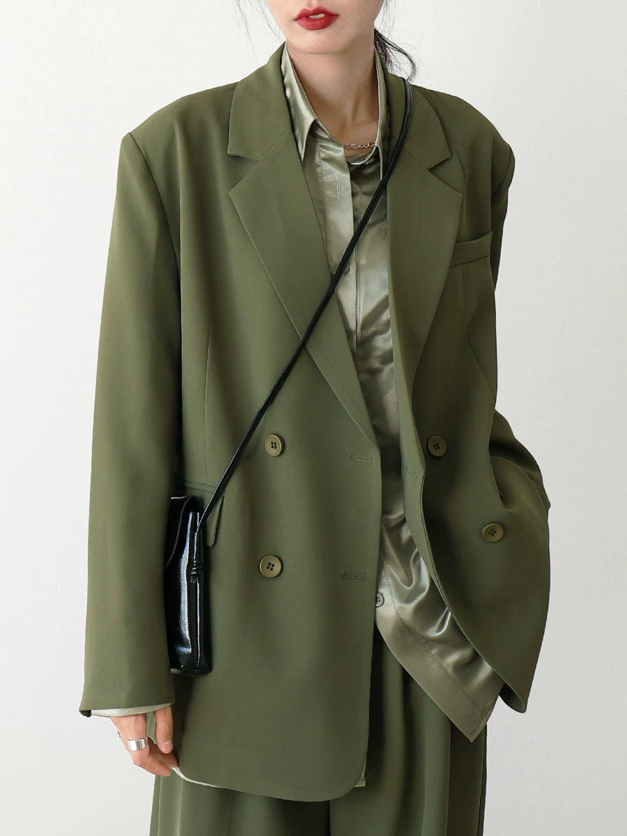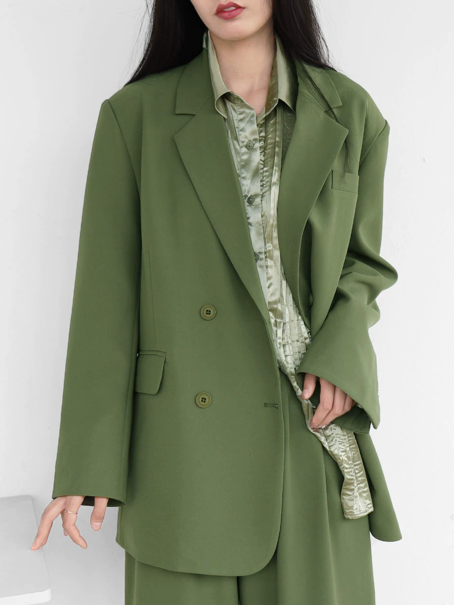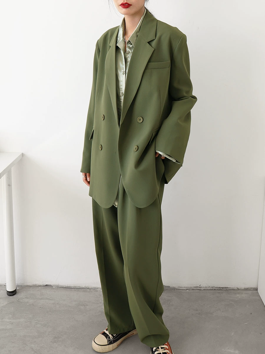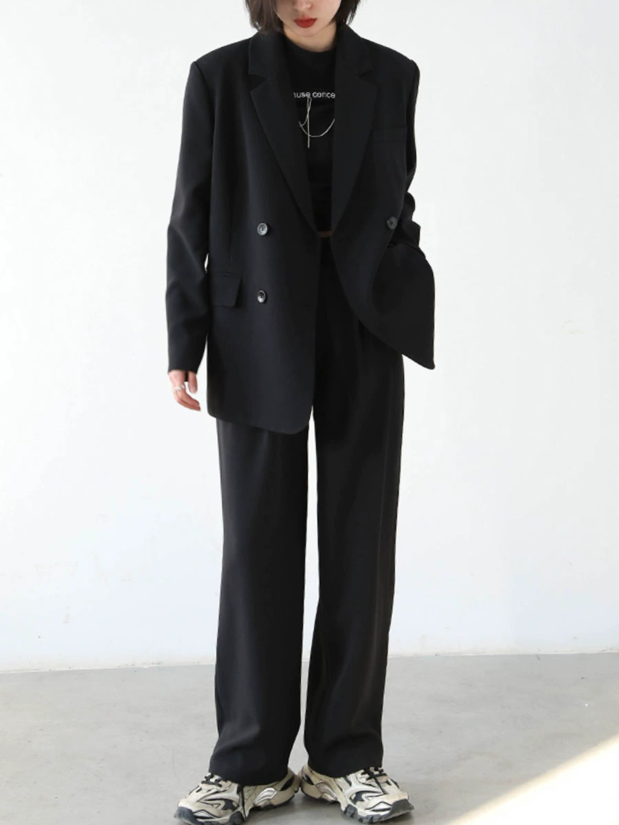 CHICCLO ​​2024 early spring new commuter simple loose suit jacket high waist wide leg pants two-piece set for women