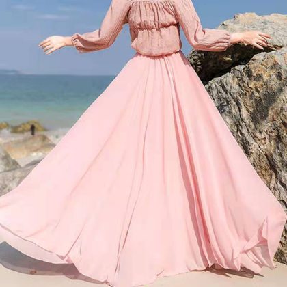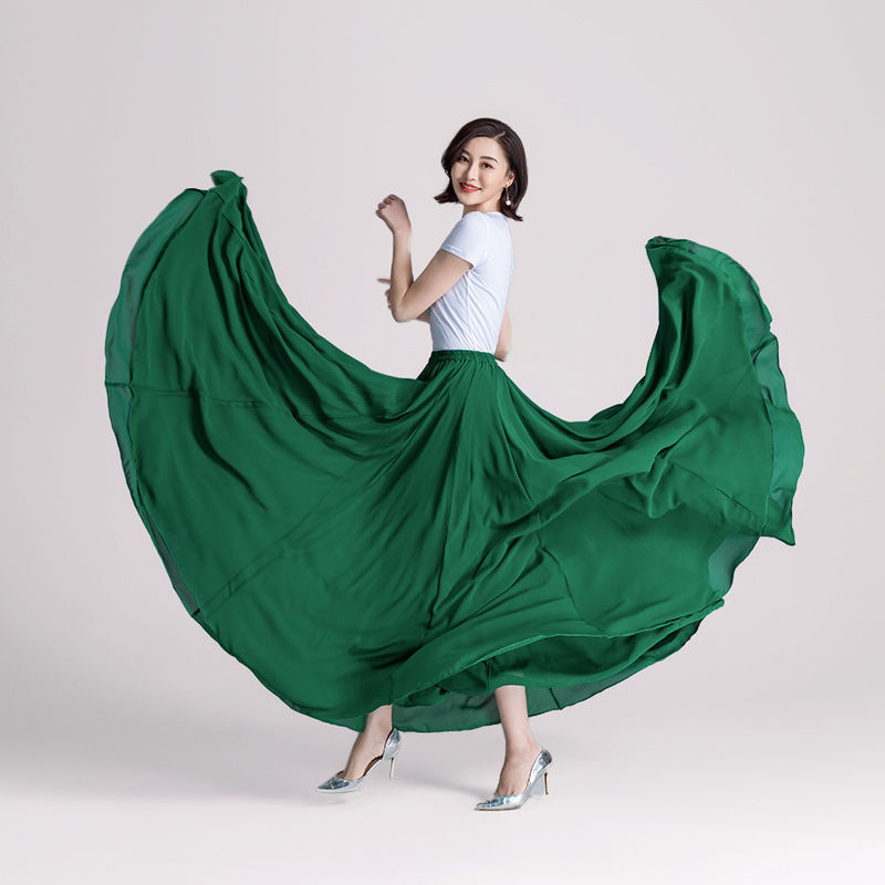 | nameOriginal | Chiffon 720-degree dance large swing skirt spring and summer new double-layer skirt high waist solid color plus size mop sand stall skirt |