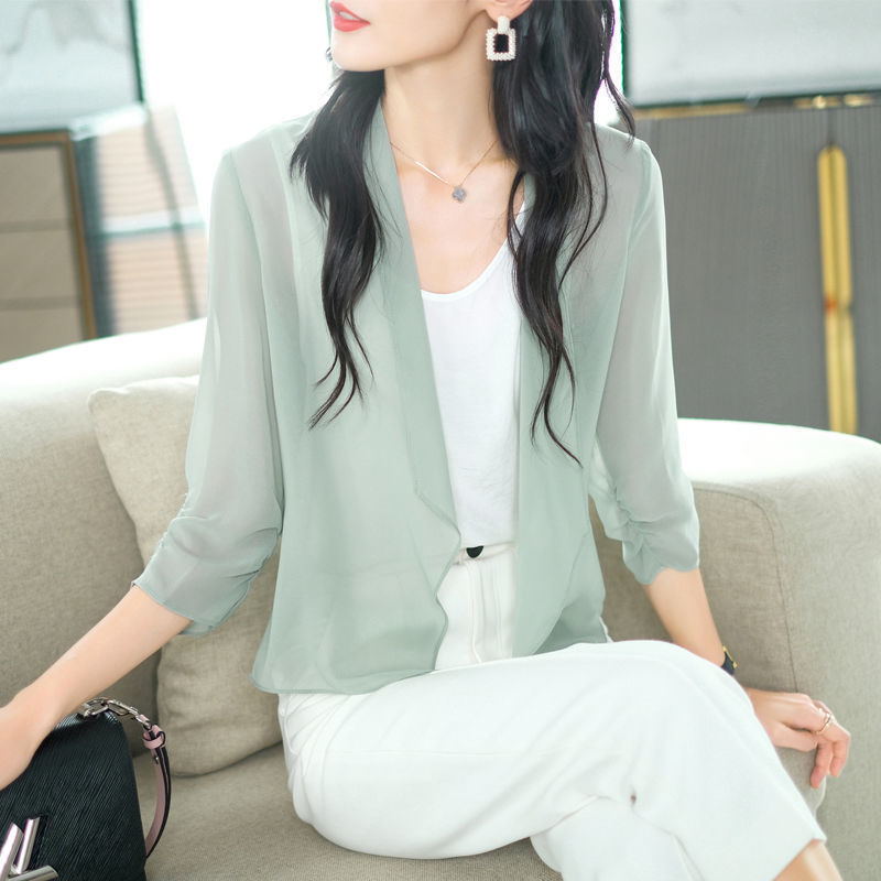 | nameOriginal | Chiffon Cardigan Short Coat Women's Summer New Fashion Thin Outer Draped Air-conditioning Shirt All-match Blouse Sunscreen Shawl Trendy |