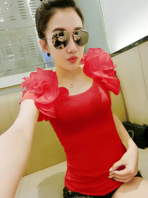 | nameOriginal | Chiffon ear-hemmed short-sleeved slim backless top T-shirt |