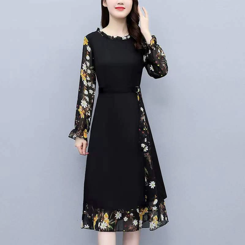 | nameOriginal | Chiffon floral dress women's clothing spring and autumn 2023 new large size fashionable waist slimming long sleeves |