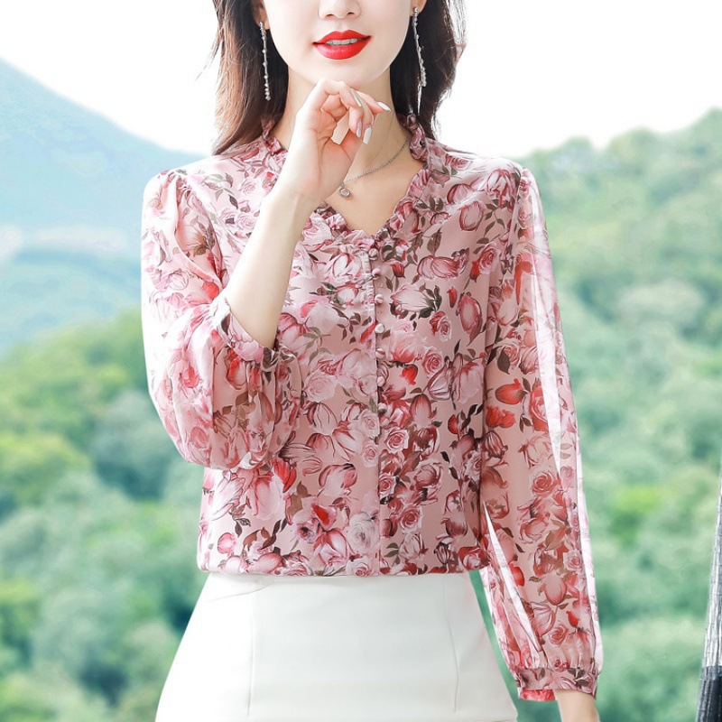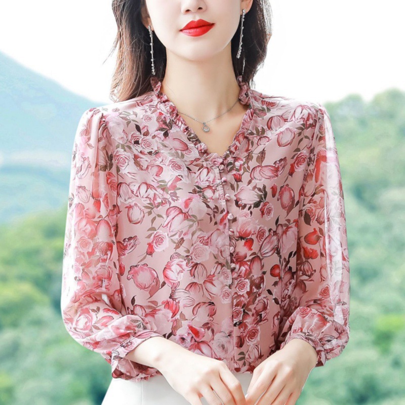 | nameOriginal | Chiffon Floral Thin Shirt 2023 Summer Mother Stylish Loose Elegant Casual Fashion Women's Nine-Sleeve Shirt |