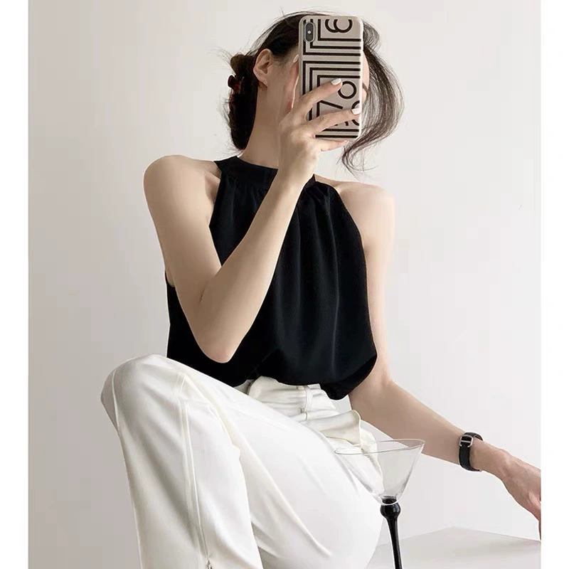 | nameOriginal | Chiffon French suspender suit with shaved shoulders and cut sleeves with halter neck |