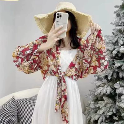 | nameOriginal | Chiffon printed wide sleeve summer suspender women's all-match skirt  |