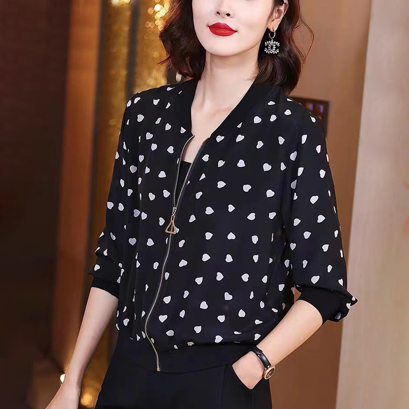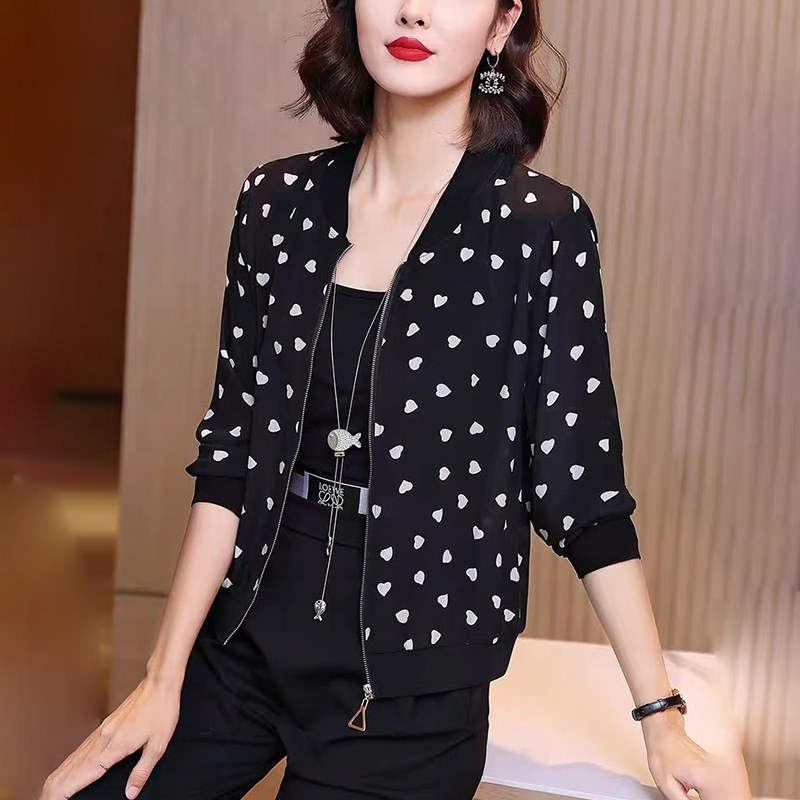 | nameOriginal | Chiffon Shirt Jacket Women's Spring/Summer 2024 cross-border new polka dot European and American style loose jacket long sleeve zipper baseball uniform |