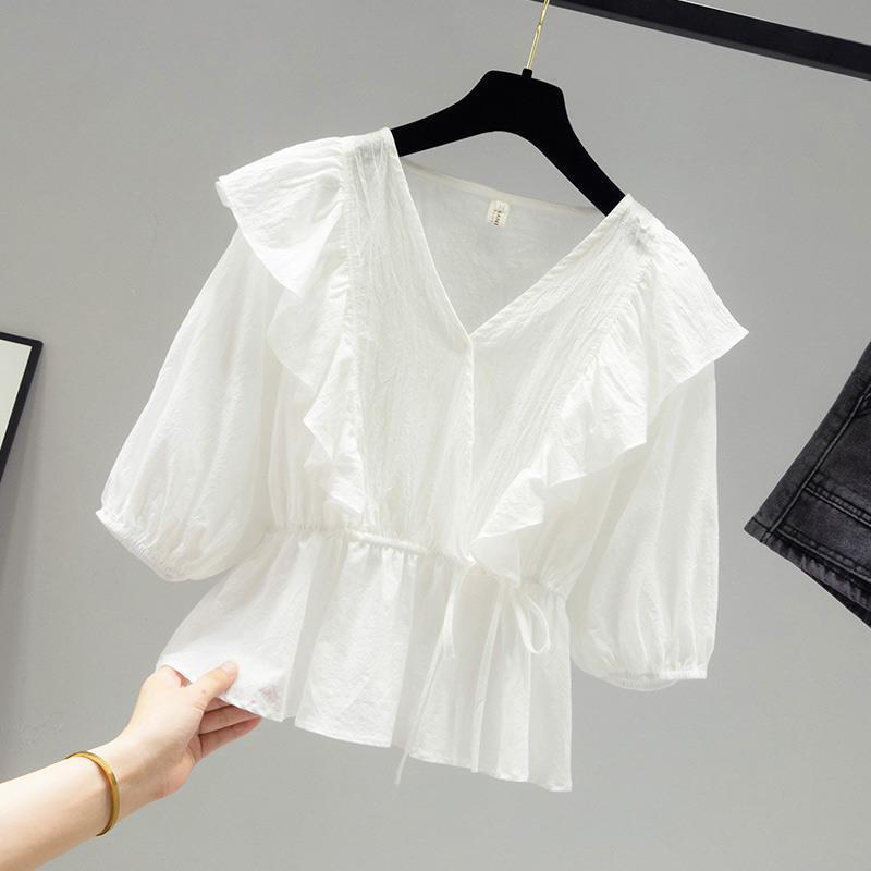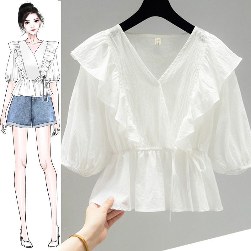 Chiffon shirt white short-sleeved women's summer 2024 new belly-covered fairy-like waist-length clothes foreign-style small shirt