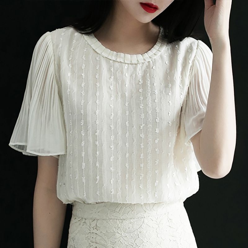 Chiffon Shirt Women’s 2024 Short-sleeved Loose Belly Covering Flying Sleeve Chiffon Shirt Western Style Summer New Women’s Top