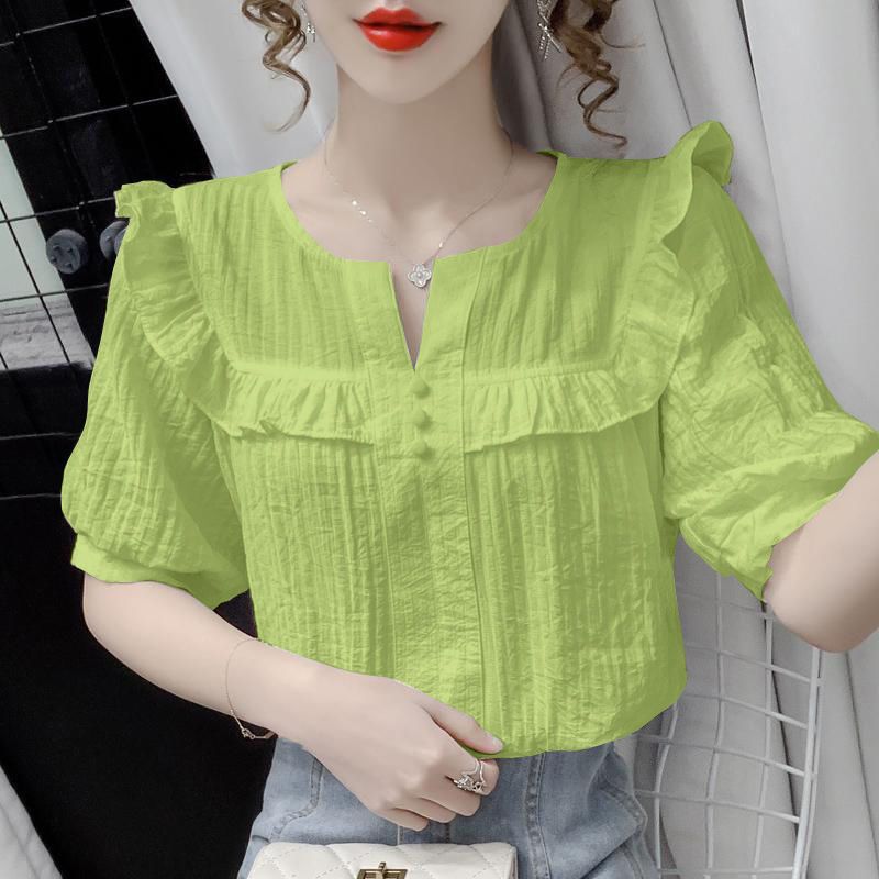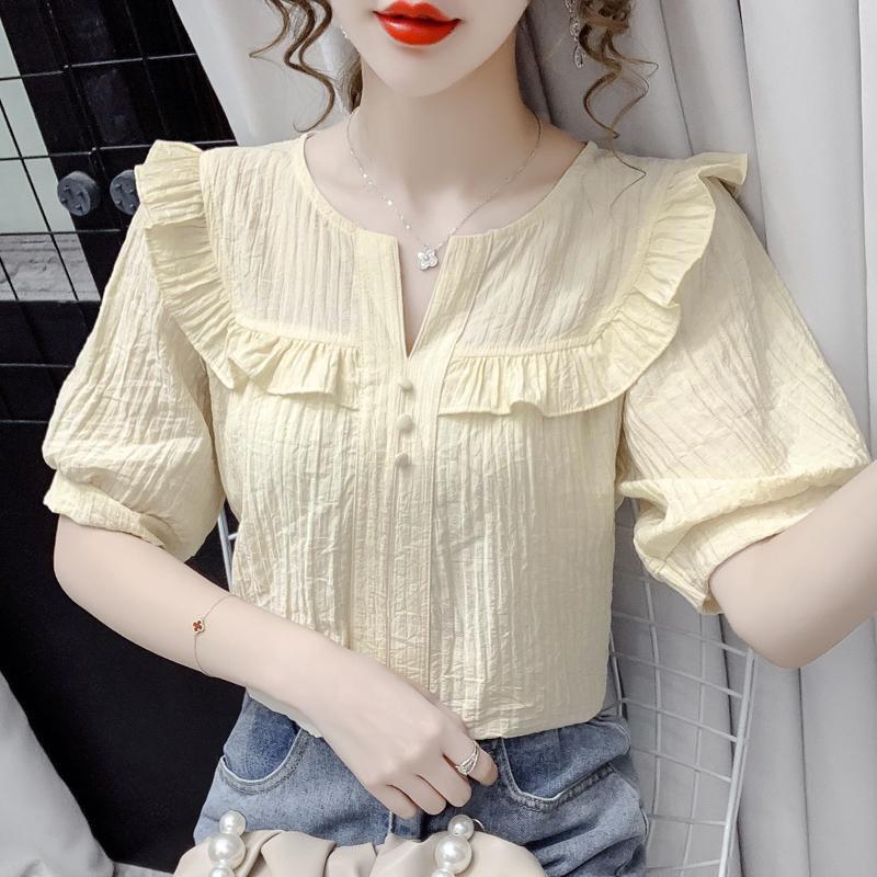 | nameOriginal | Chiffon Shirt Women's 2024 Summer New Arrival Fashionable Ear-rimmed Loose Doll Collar Shirt Stylish Slim Shirt |