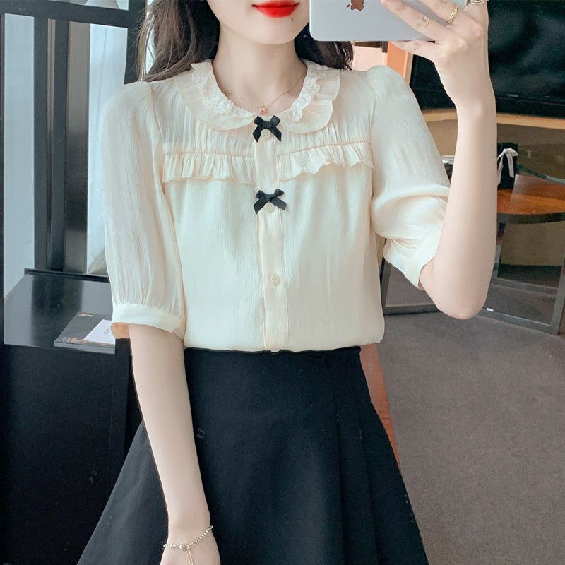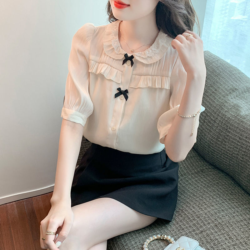 Chiffon Shirt Women's 2024 Summer New French Style Gentle Design Sense Niche Ruffled Doll Collar Chic Top