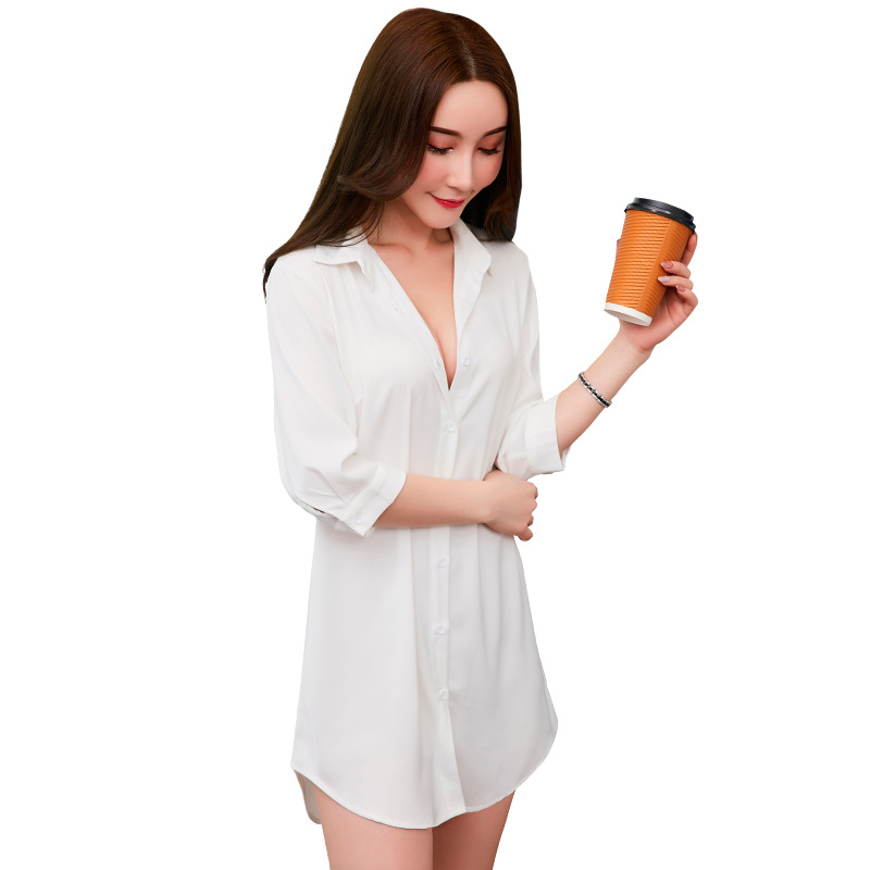 Chiffon Shirt Women’s Korean Style Mid-length New Large Size White Shirt Cropped Short-sleeved Loose Chiffon Shirt 1827