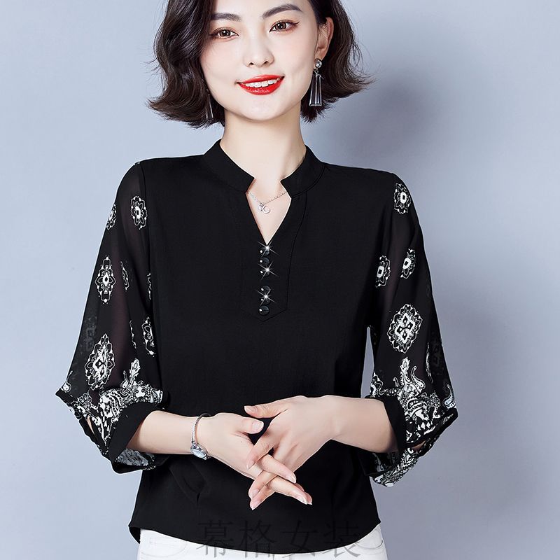 | nameOriginal | Chiffon Shirt Women's Seven-point Sleeve 2024 Summer New plus size Belly Covering Top Small Shirt Elegant All-match French Shirt Women |