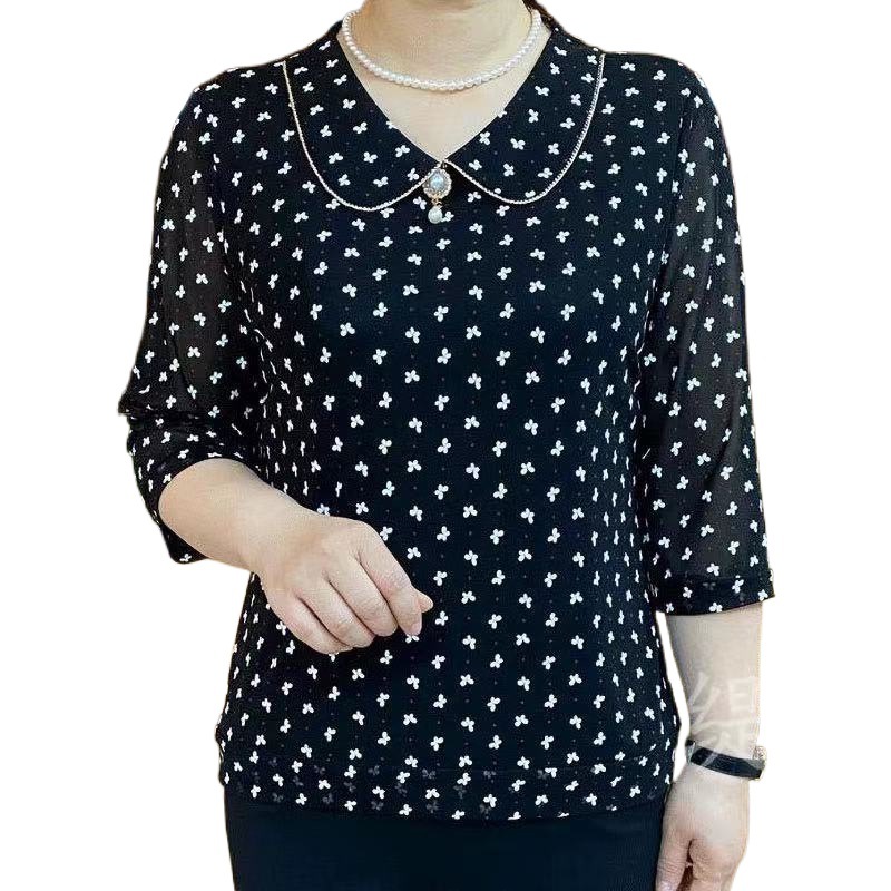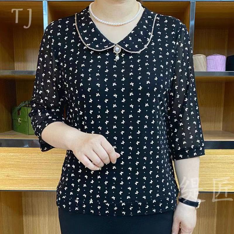 | nameOriginal | Chiffon Shirt Women's Seven-point Sleeve Summer New Belly Covering Top Elegant All-match Meat Covering Middle-aged and Elderly Mother's Dress |