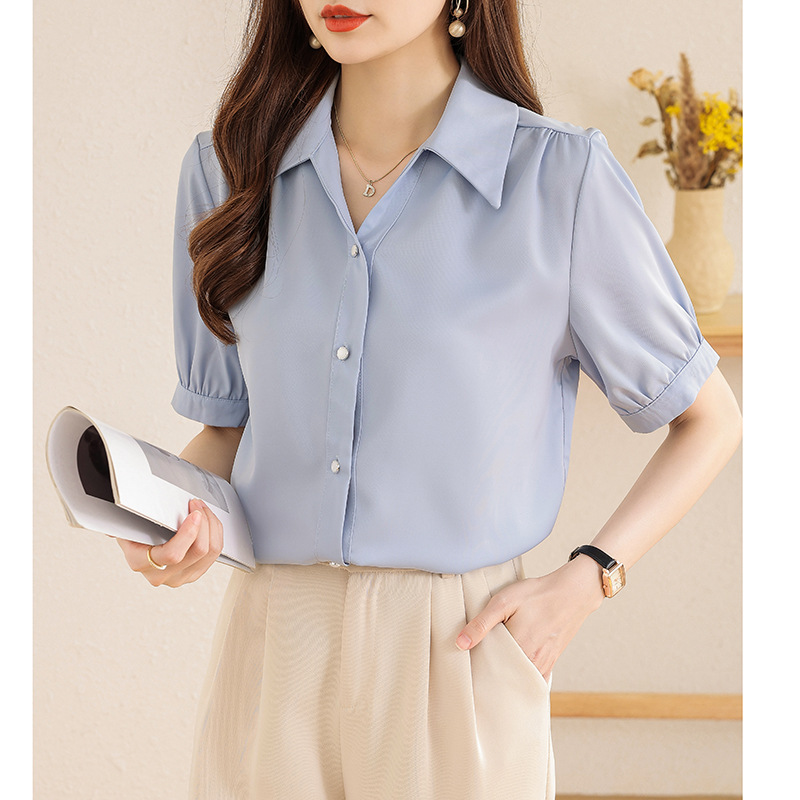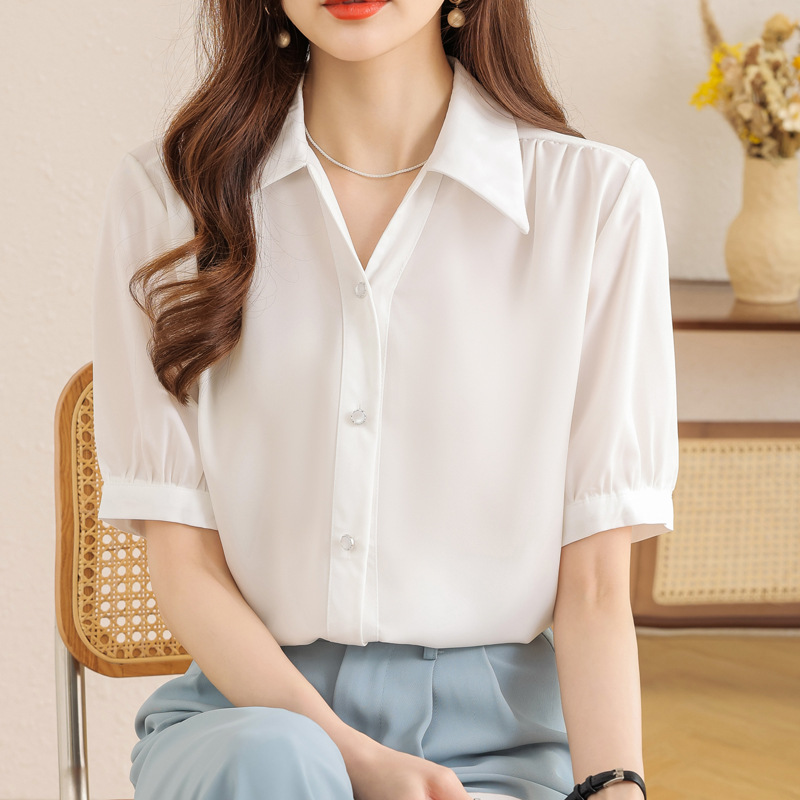 Chiffon Shirt Women’s Summer Design Sense New 2023 French Top Loose Lazy Style Short-sleeved Shirt Women’s