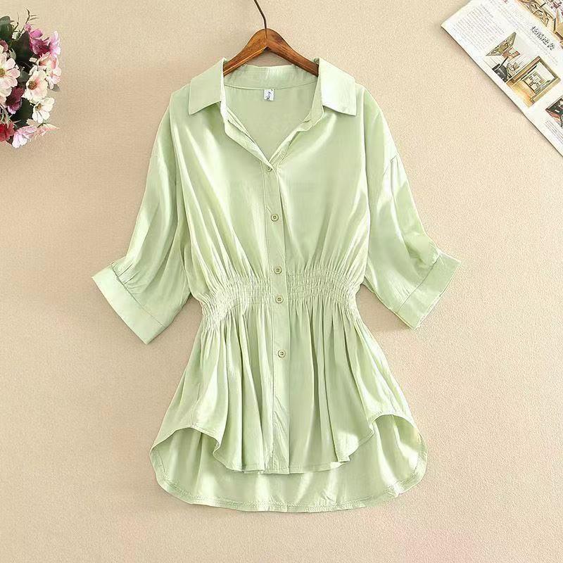 | nameOriginal | Chiffon Shirt Women's Top 2024 Summer Dress Mimic Loose Shirt Design Sense Super Fairy Belly Covering Waist Western-style Small Shirt |