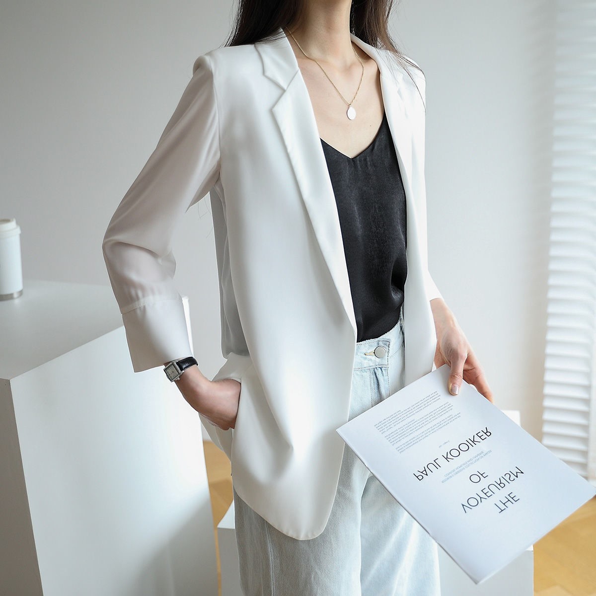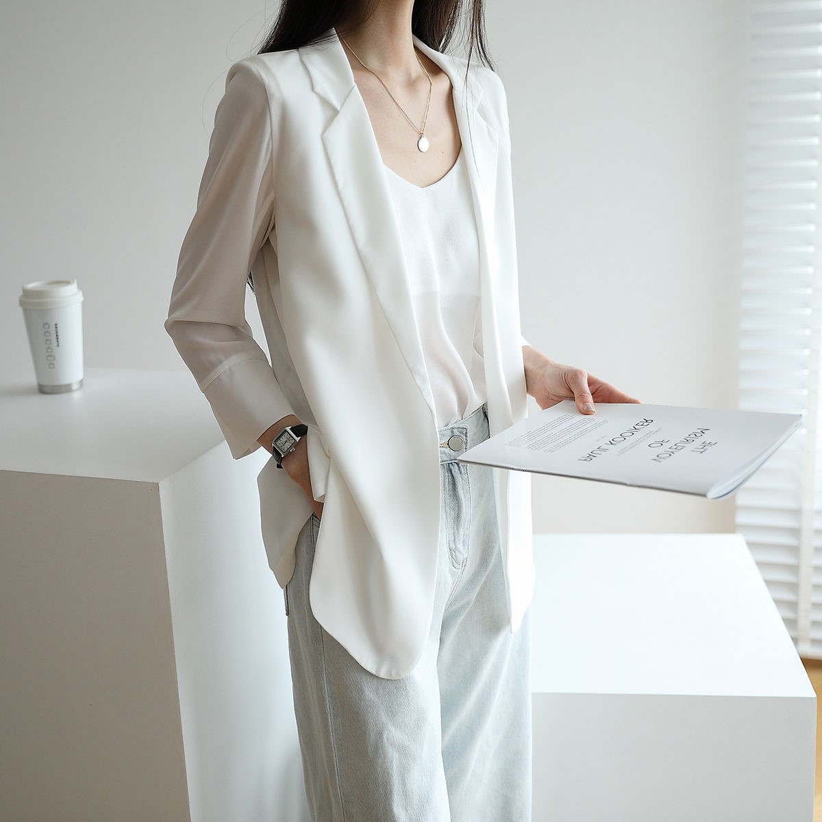 | nameOriginal | Chiffon Suit Jacket Women's 2024 Summer New Korean Style Loose White Thin Mid-length Sleeve Sunscreen Shirt |