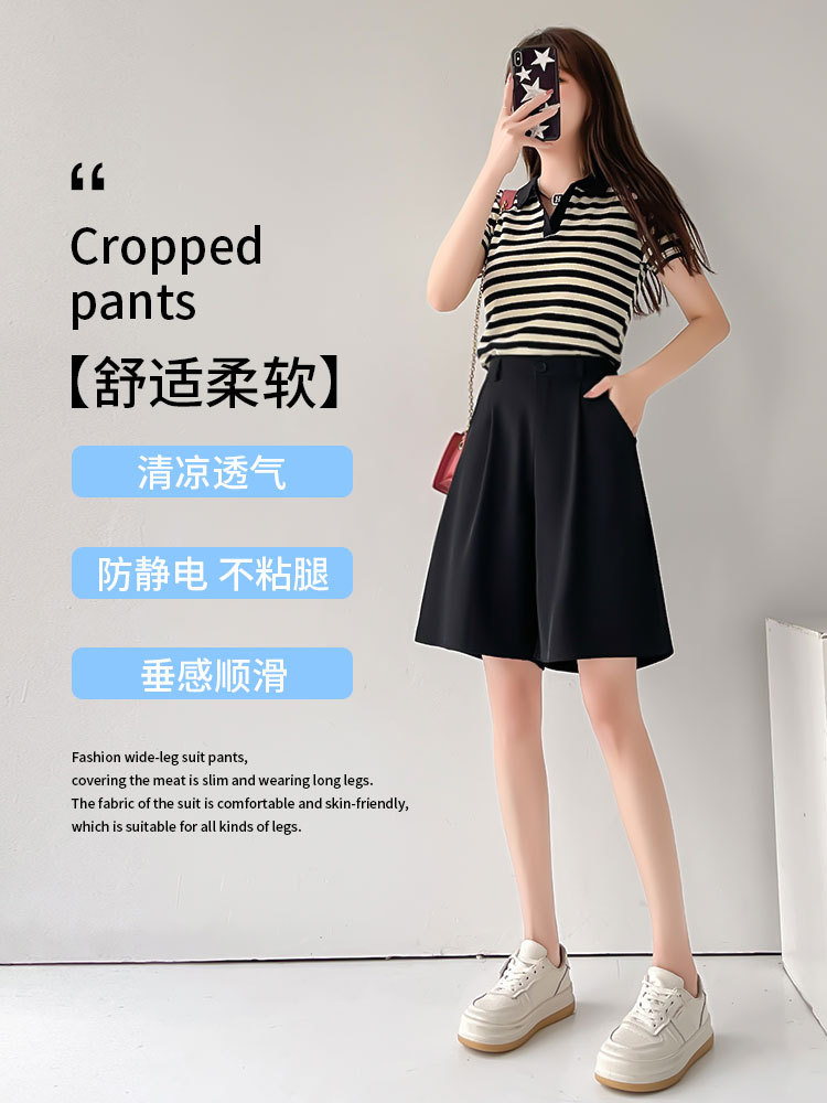| nameOriginal | Chiffon Suit Shorts Women's High Waist Summer Thin Figure Flattering Black Casual Wide Leg Shorty Ice Silk Pants |