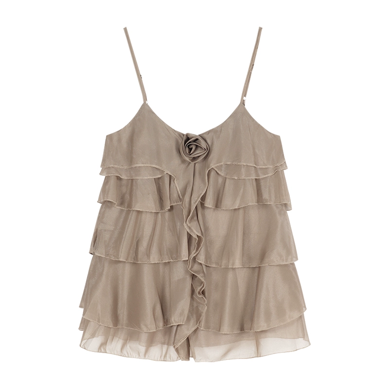 Chiffon suspender dress with elegant v-neck and loose flowers
