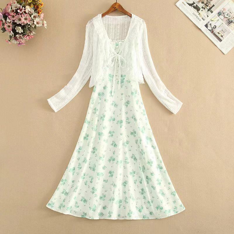 | nameOriginal | Chiffon Suspender Skirt Women's Summer New Gentle Sunscreen Cardigan Blouse Thin Shawl Outer Jacket Two-piece Set |