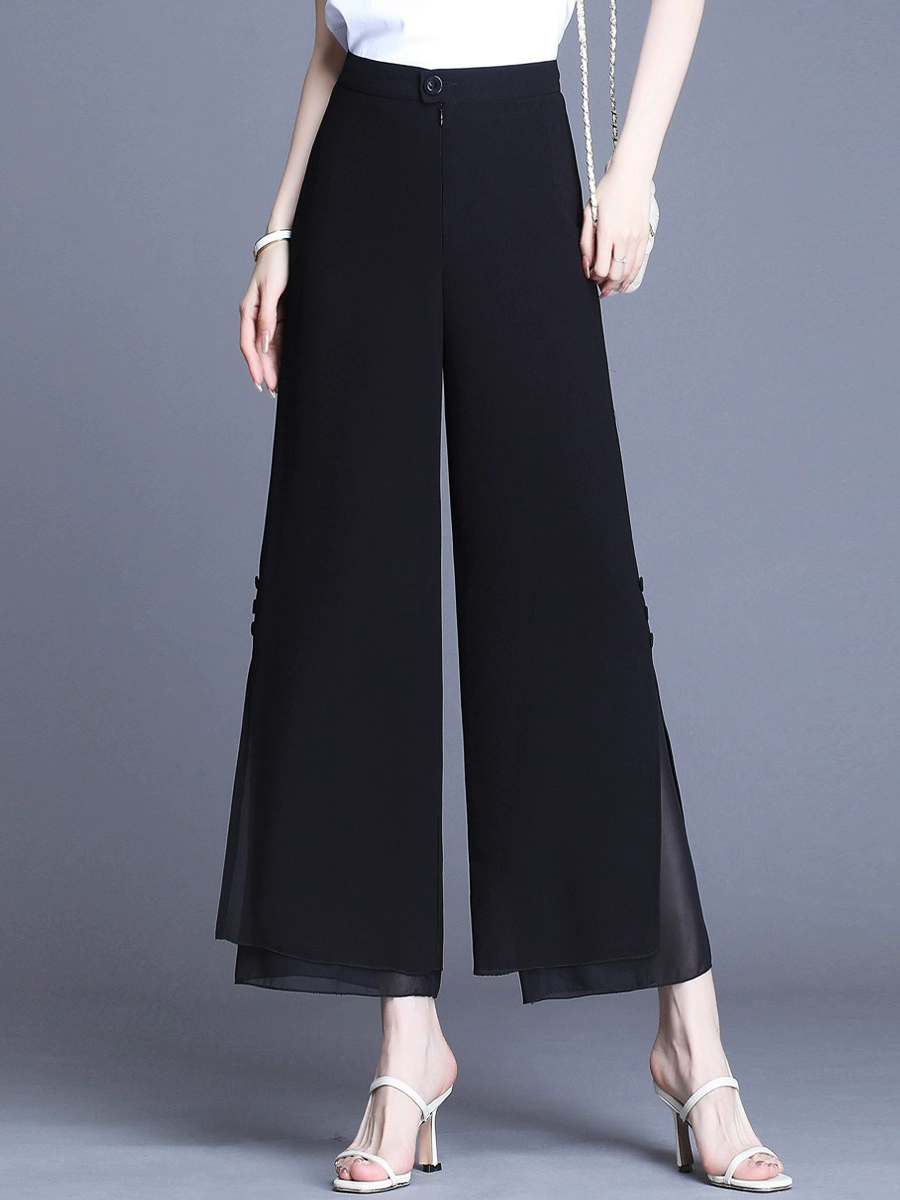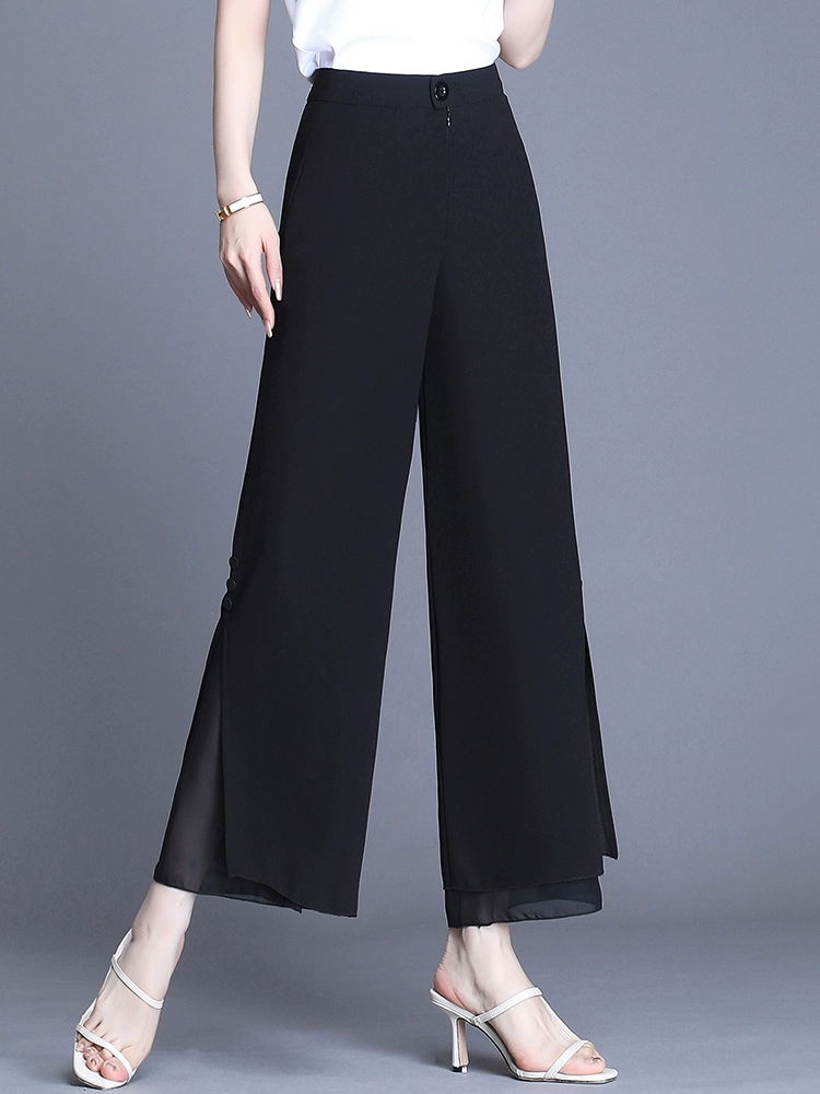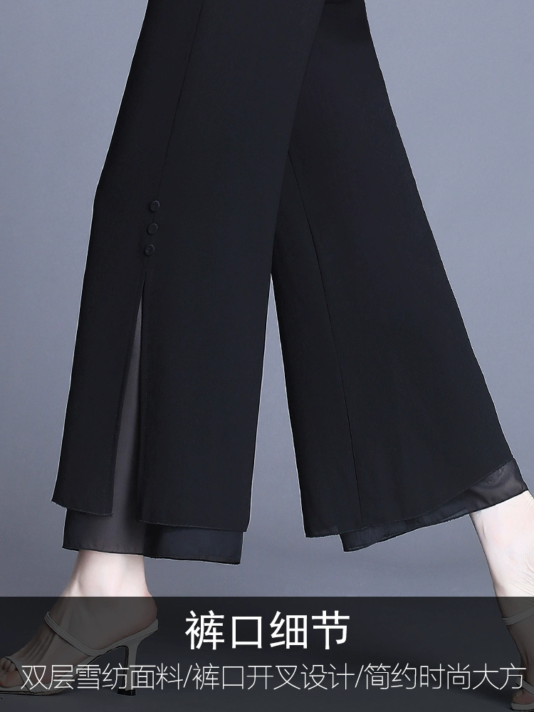 | nameOriginal | Chiffon wide-leg pants for women in summer, thin, slit, black, slim, small pants, loose, straight, nine-point pants |