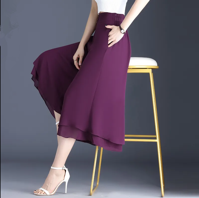 | nameOriginal | Chiffon Women's Summer High Waist Loose Drape Thin Capri Pants |