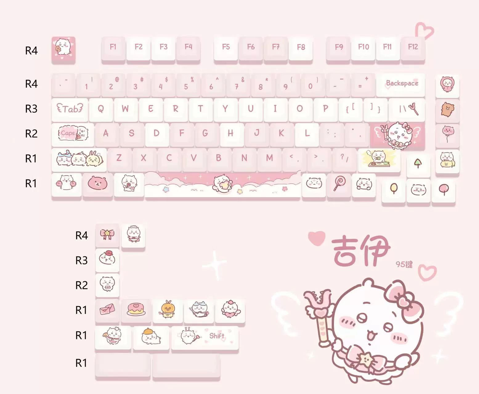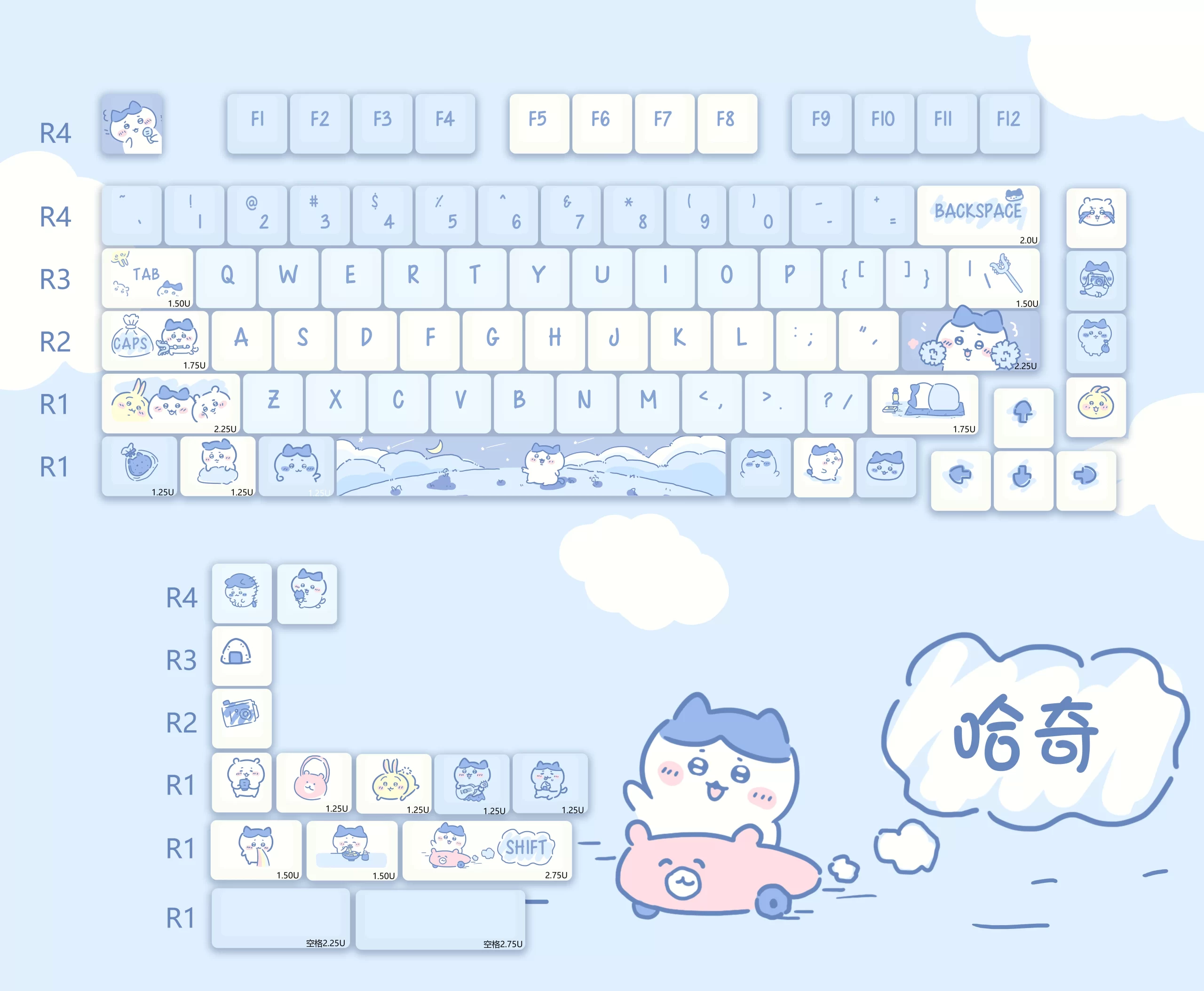 | nameOriginal | chiikawa keycap MOA highly cute Usachihachijiyi rounded PBT sublimation keycap Longcheng |