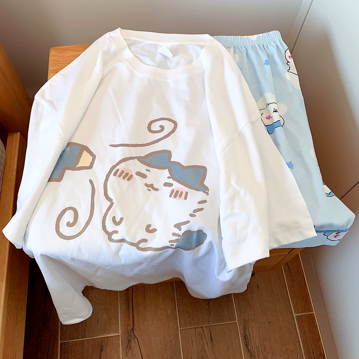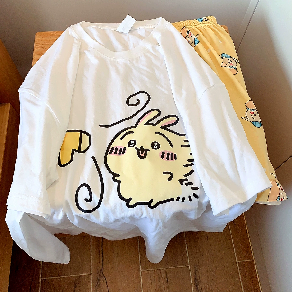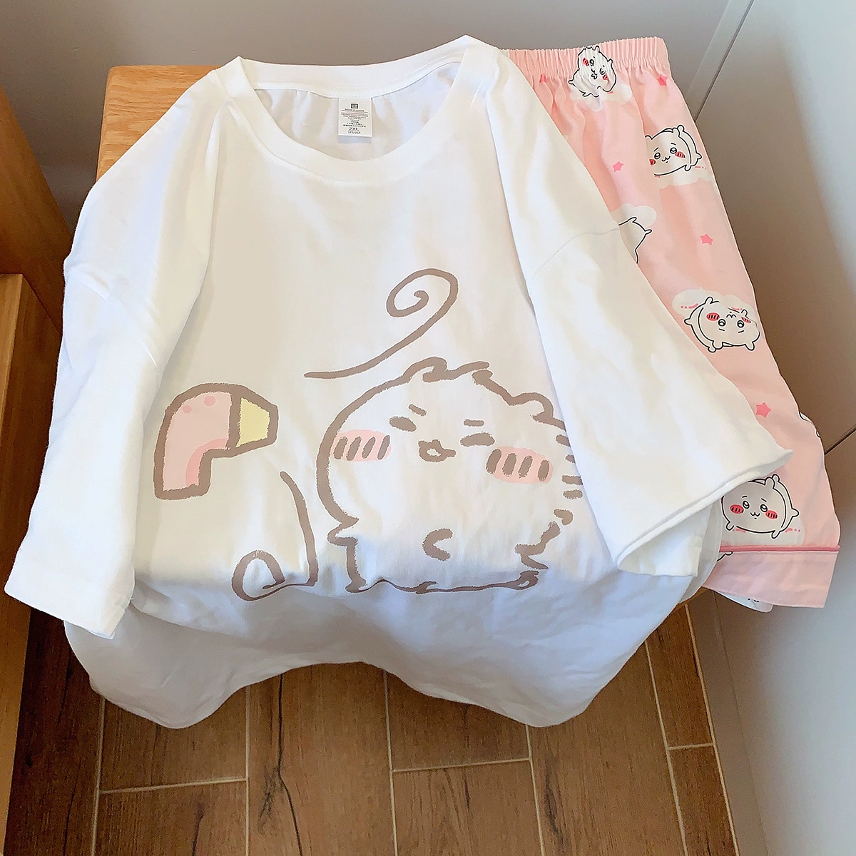 chiikawa small round neck women’s pure cotton shorts pajamas