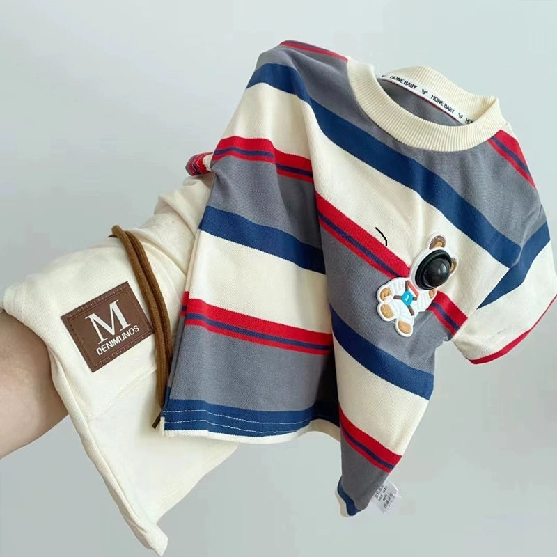 | nameOriginal | Children's 2024 summer children's clothing little astronaut cartoon short-sleeved T-shirt pure cotton striped tops for boys and girls |