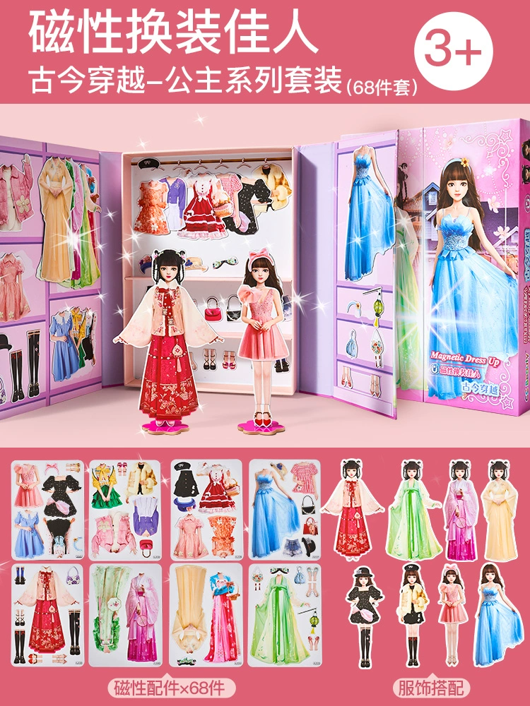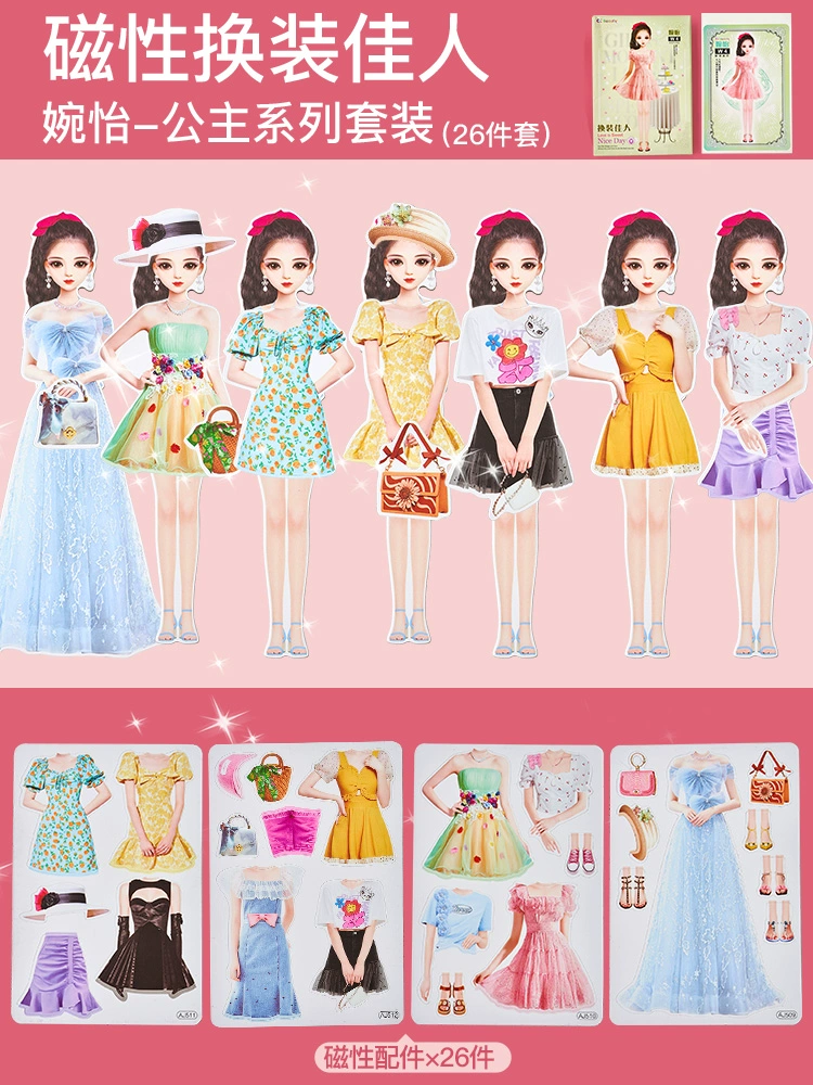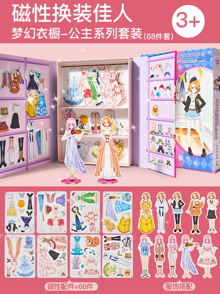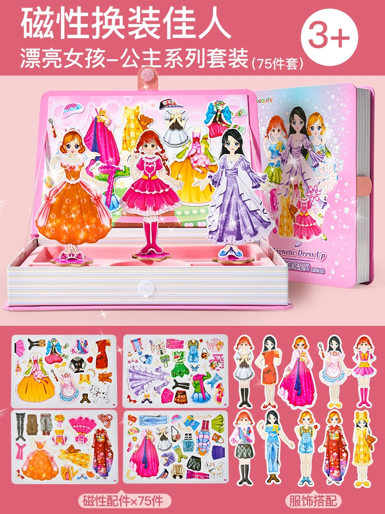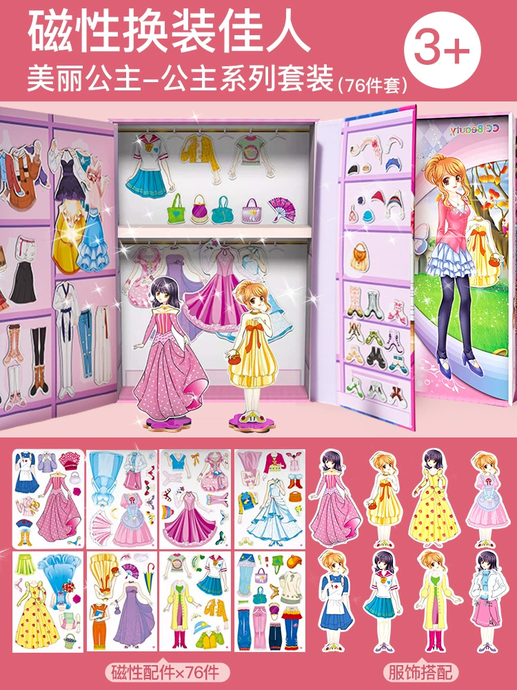 Children’s 3D three-dimensional puzzle magnetic stickers princess dress-up stickers for girls 3 to 6 years old and above baby educational toys