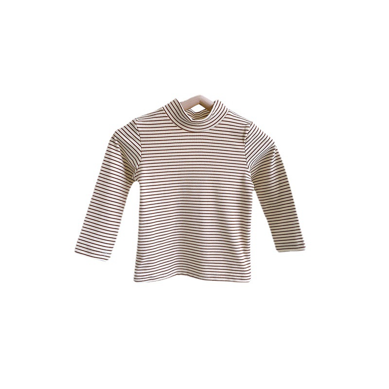 Children’s autumn and winter half turtleneck bottoming shirt winter boys and girls striped fleece-lined top long sleeve shirt baby Autumn