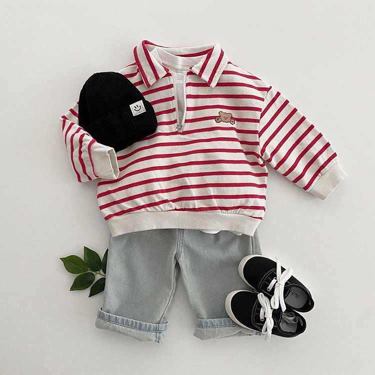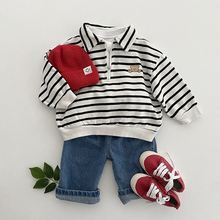 | nameOriginal | Children's autumn striped T-shirt embroidered bear polo shirt 2024 South Korea children's clothing baby clothes boys and girls tops |