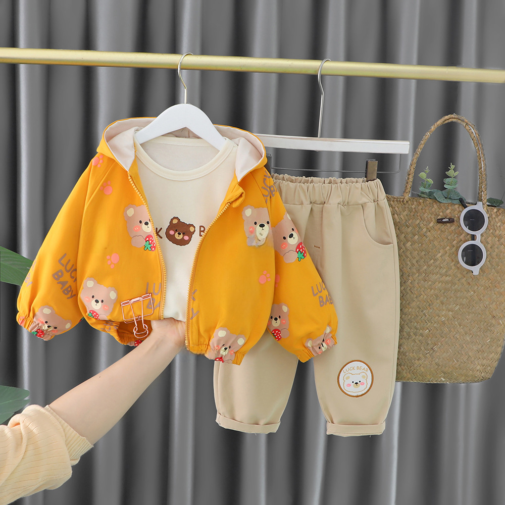 | nameOriginal | Children's autumn three-piece Korean-style cartoon hooded windbreaker boys' coat trendy 2022 girls' autumn suit wholesale |