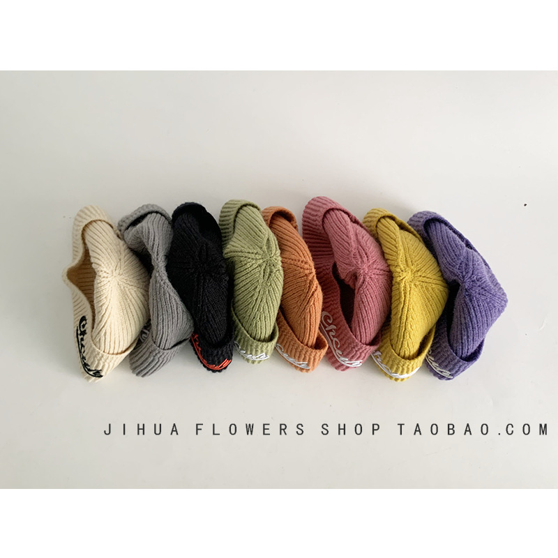 Children’s Autumn Wool Pullover Cap ins Korean-style Candy-colored Knitted Melon-skin Cap Trendy Autumn and Winter Hat for Baby Boys and Girls