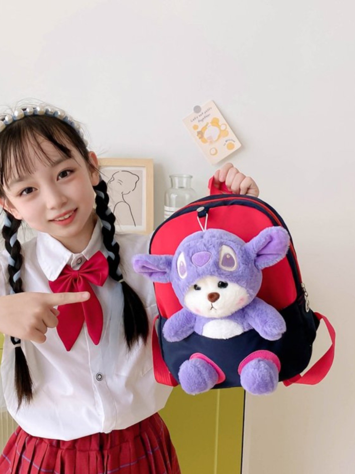 | nameOriginal | Children's backpack new strawberry bear backpack kindergarten cartoon plush doll schoolbag lightweight nylon Fashion Bag |