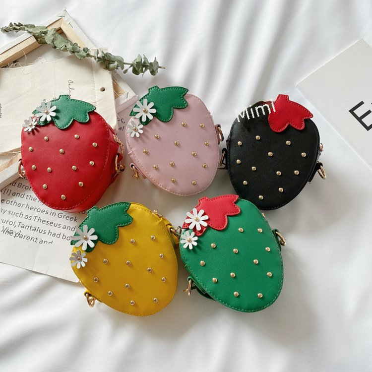 Children’s Bag 2022 Korean Style Cute Cartoon Strawberry Girl’s Single Bag Fashion Rivet Decoration Baby’s Coin Purse