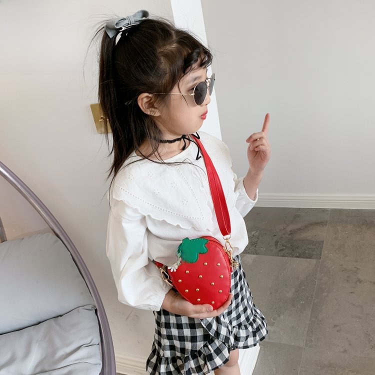 Children's Bag 2022 Korean Style Cute Cartoon Strawberry Girl's Single Bag Fashion Rivet Decoration Baby's Coin Purse