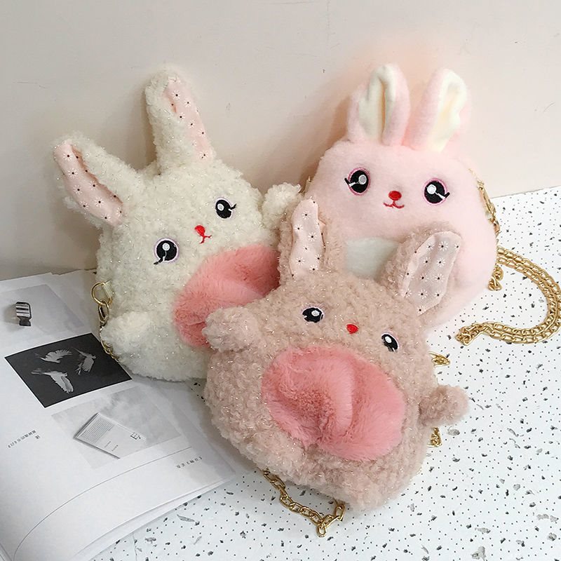 Children’s Bag 2022 New Korean Plush Chain Small Bag Women’s Mobile Phone Bag Cute Rabbit Shoulder Crossbody Bag