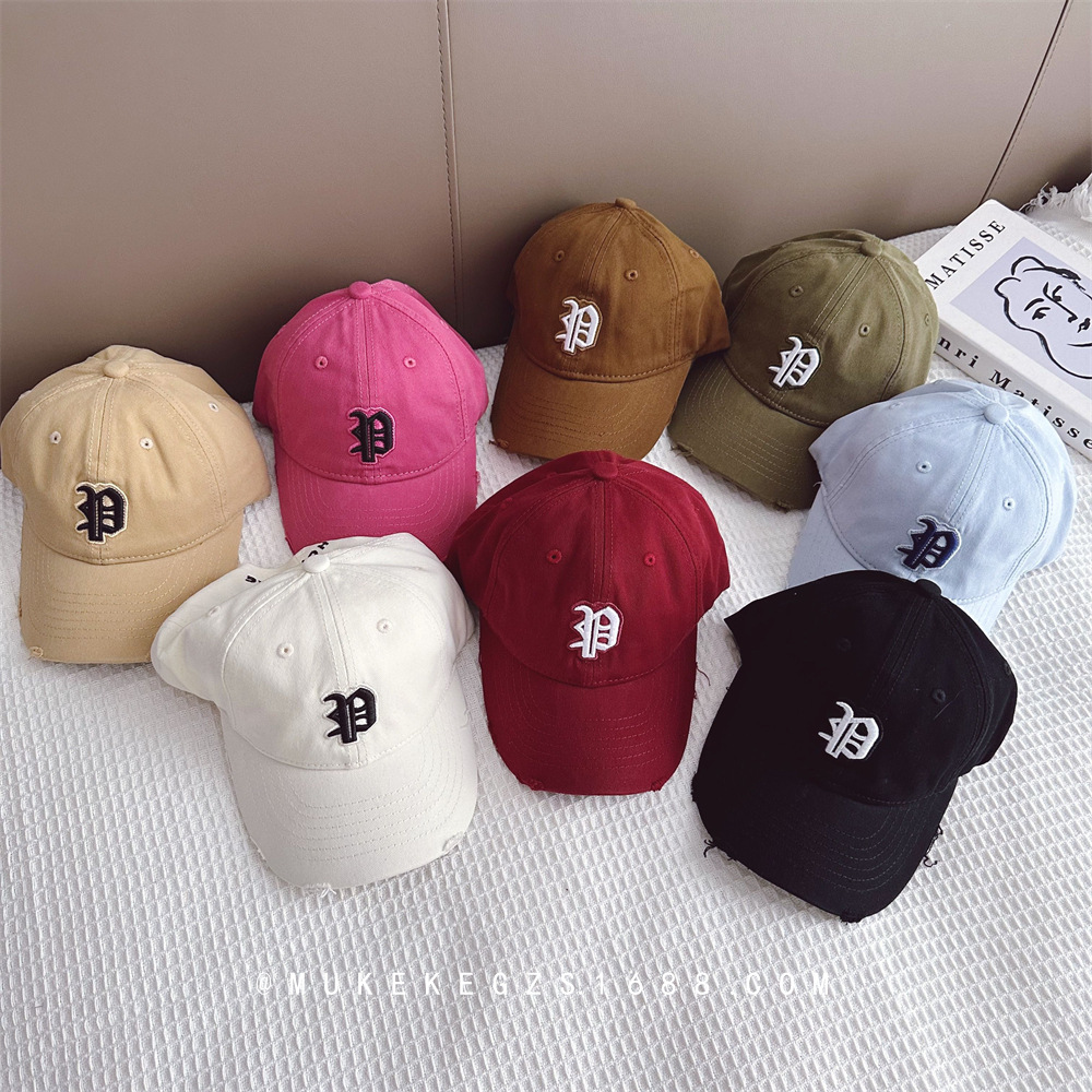 | nameOriginal | Children's baseball cap spring and summer new soft top ripped letter embroidery male and female baby sun hat peaked cap tide |