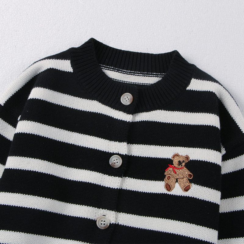 | nameOriginal | Children's bear sweater 2023 autumn new boys' striped knitted cardigan girls' embroidered round neck wool coat |