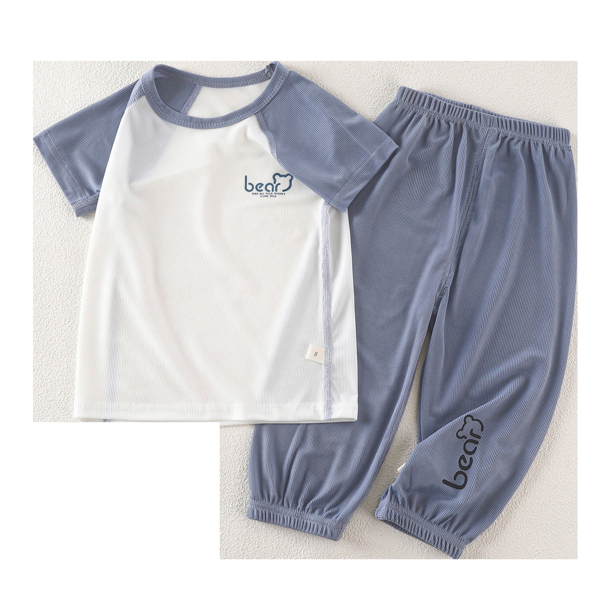 | nameOriginal | Children's Boneless Pajamas Ice Silk Suit Summer Thin Boys' Girls' and Babies' Air-conditioning Suit Large Children's Short-sleeved Cropped Pants |