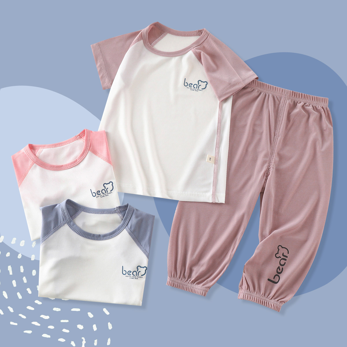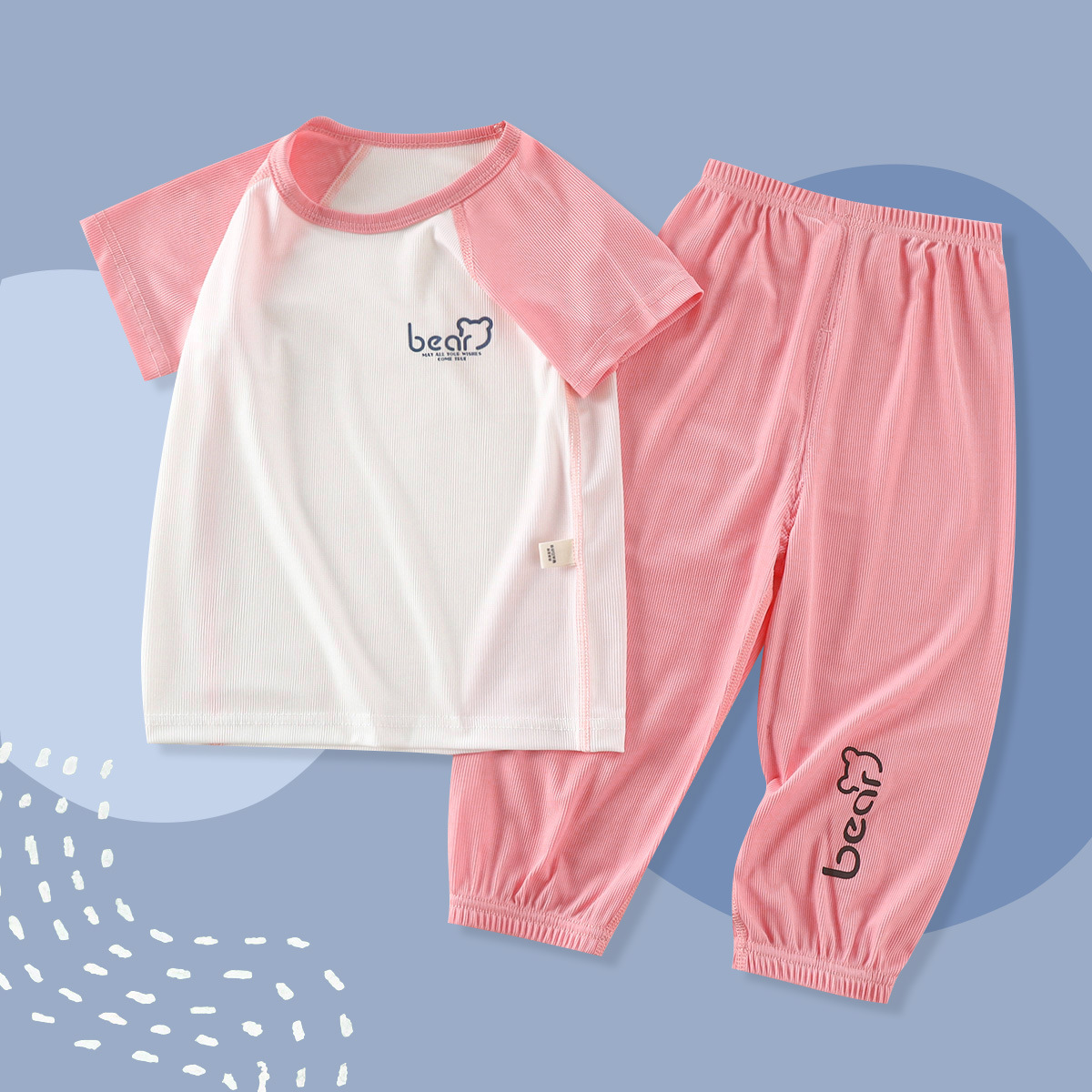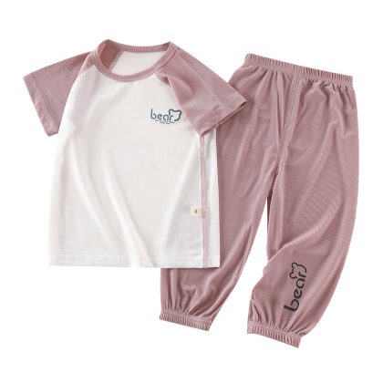 | nameOriginal | Children's Boneless Pajamas Ice Silk Suit Summer Thin Boys' Girls' and Babies' Air-conditioning Suit Large Children's Short-sleeved Cropped Pants |