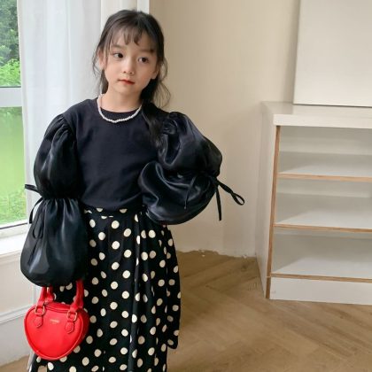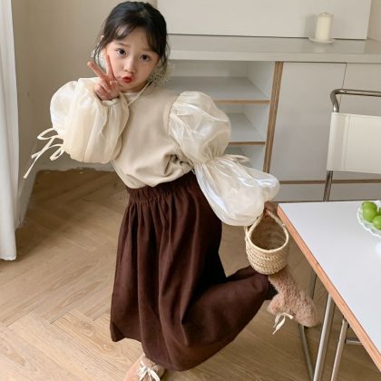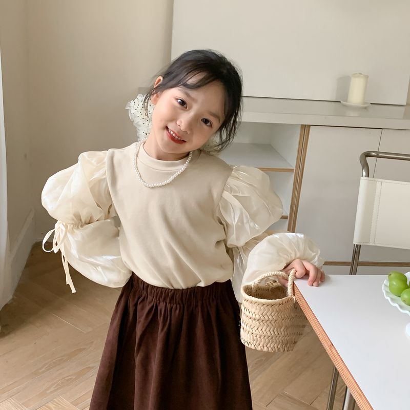 | nameOriginal | Children's Bottoming 2023 Autumn Girls' Korean Round Neck Bubble Sleeve Solid Color Inner Children's Thickened Lace-Up Top |