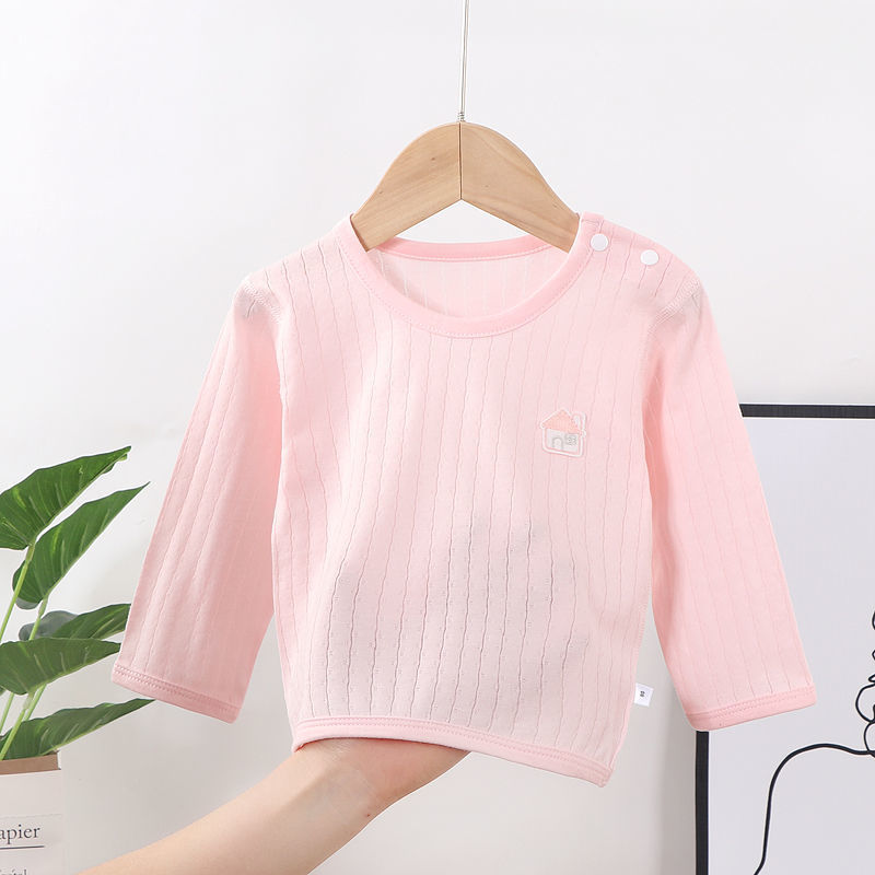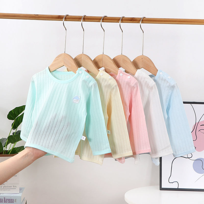 | nameOriginal | Children's bottoming shirt boneless shoulder buckle long sleeve boys and girls pajamas baby Summer clothes baby air conditioning clothes thin |