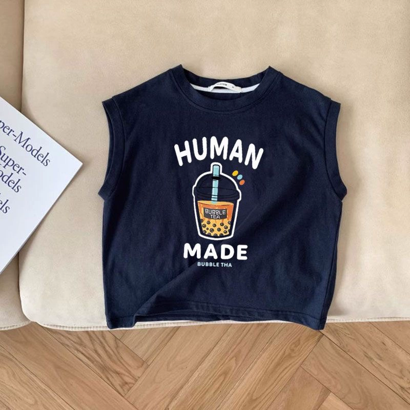 | nameOriginal | Children's bottoming shirt summer new boys' alphabet milk tea Korean style tops for children and middle-aged children cartoon sleeveless vests |