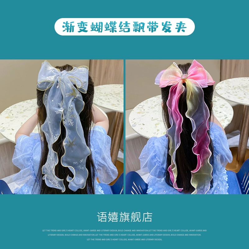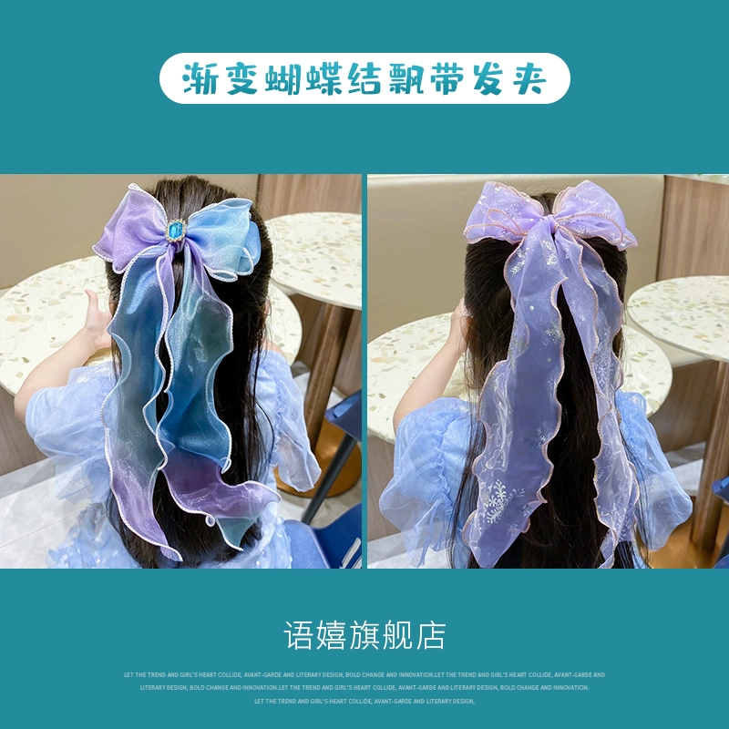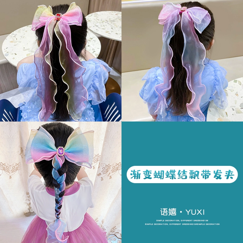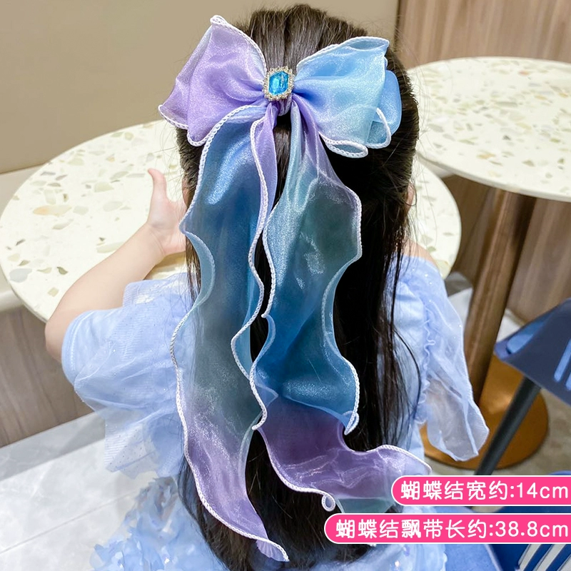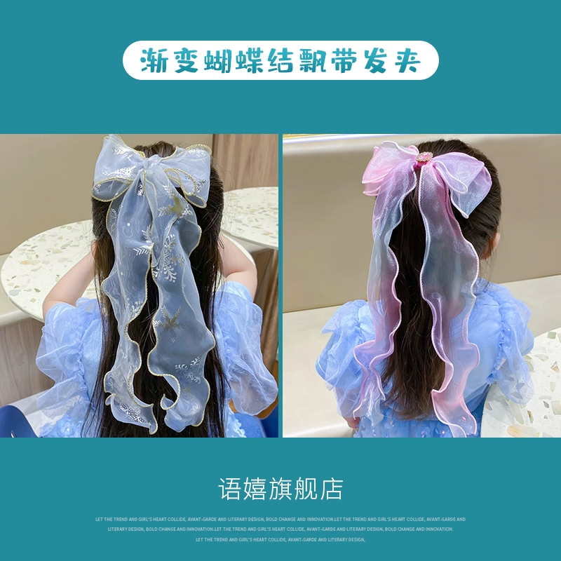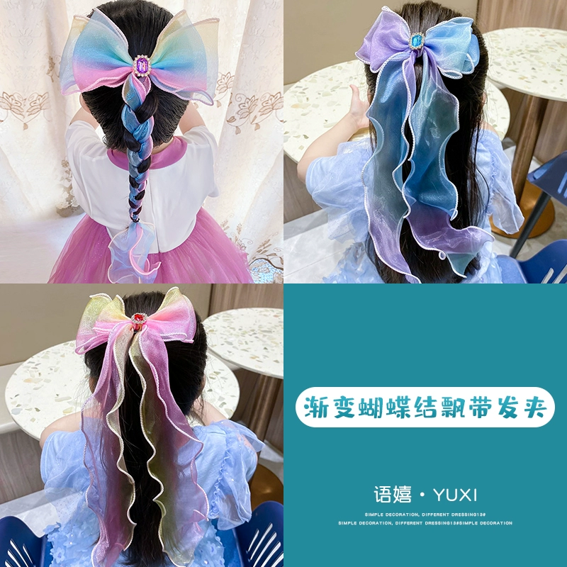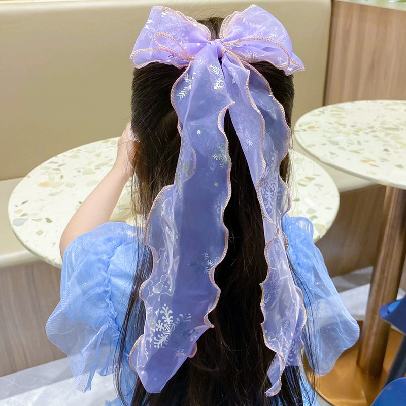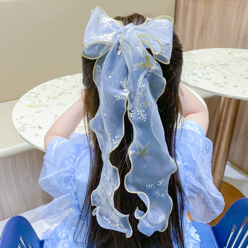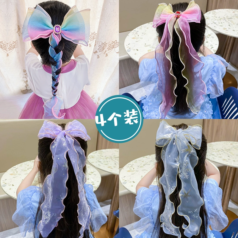 Children's bow headdress ponytail ice and snow ribbon braided mesh hairpin Princess Elsa hair accessories girls' hairband