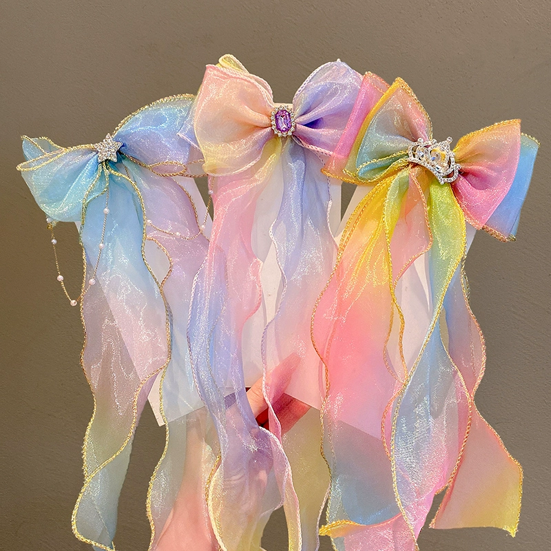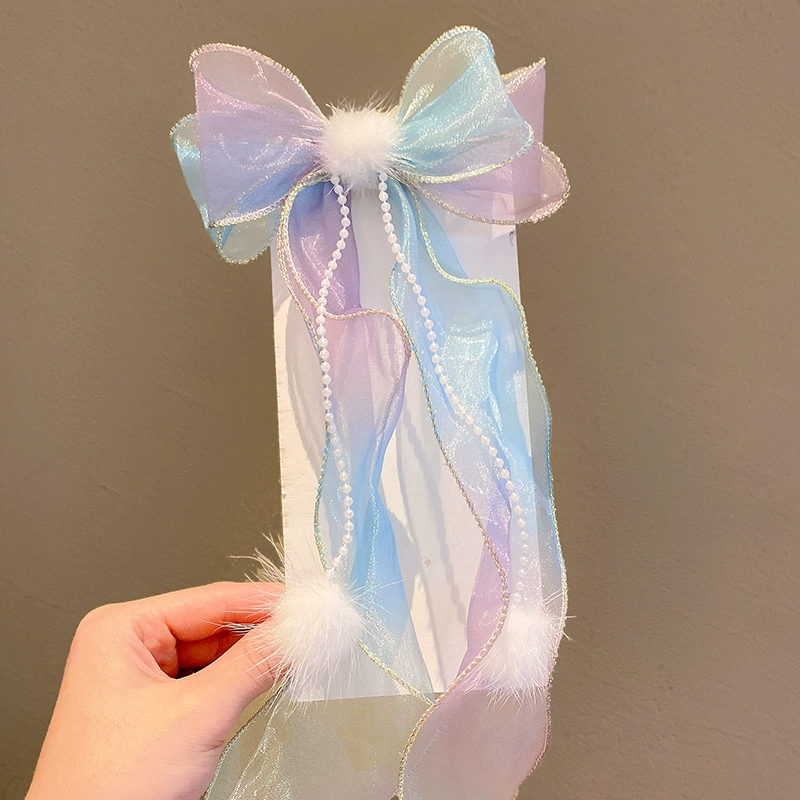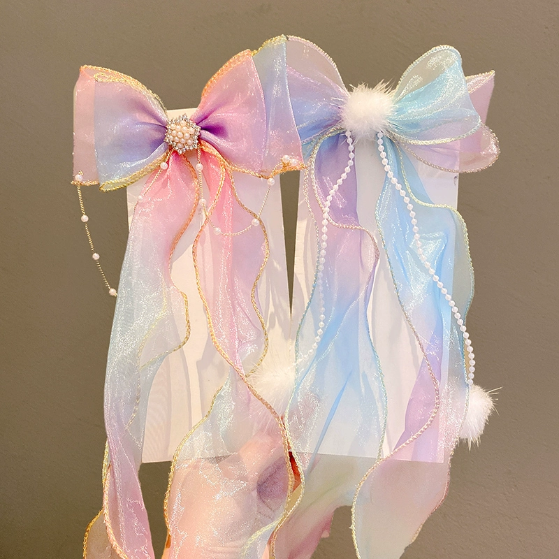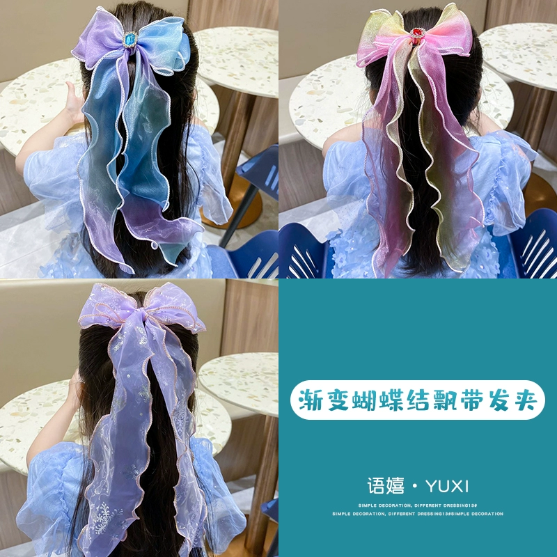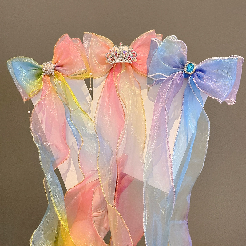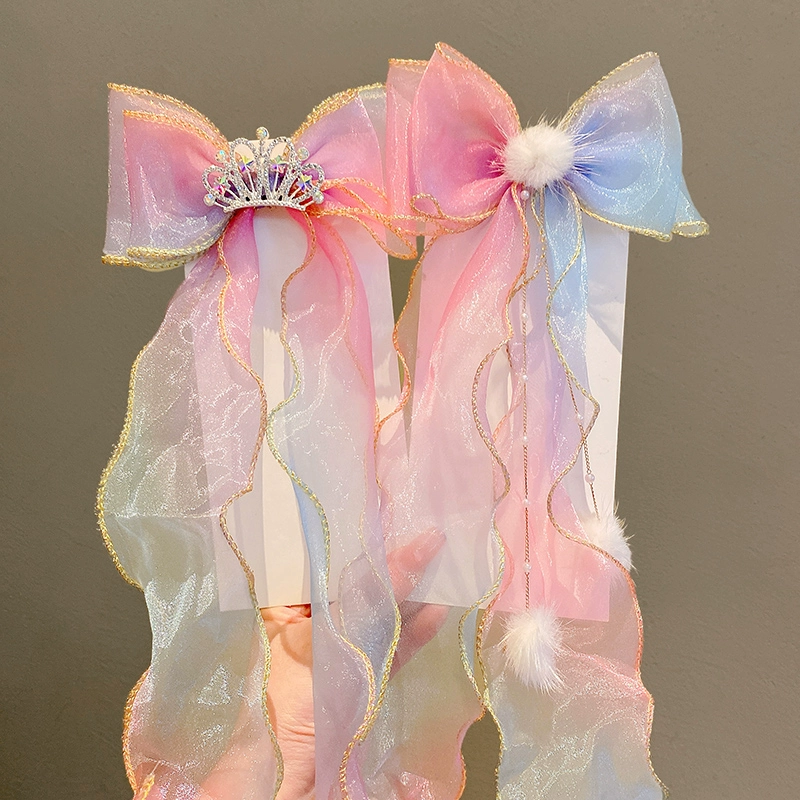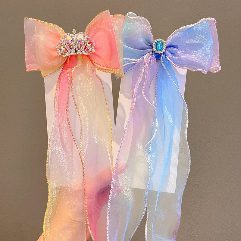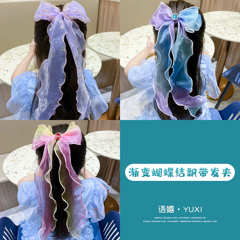 Children's bow headdress ponytail ice and snow ribbon braided mesh hairpin Princess Elsa hair accessories girls' hairband