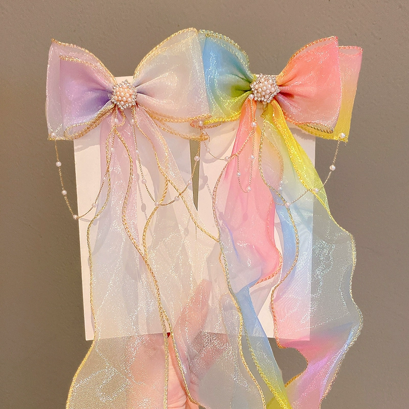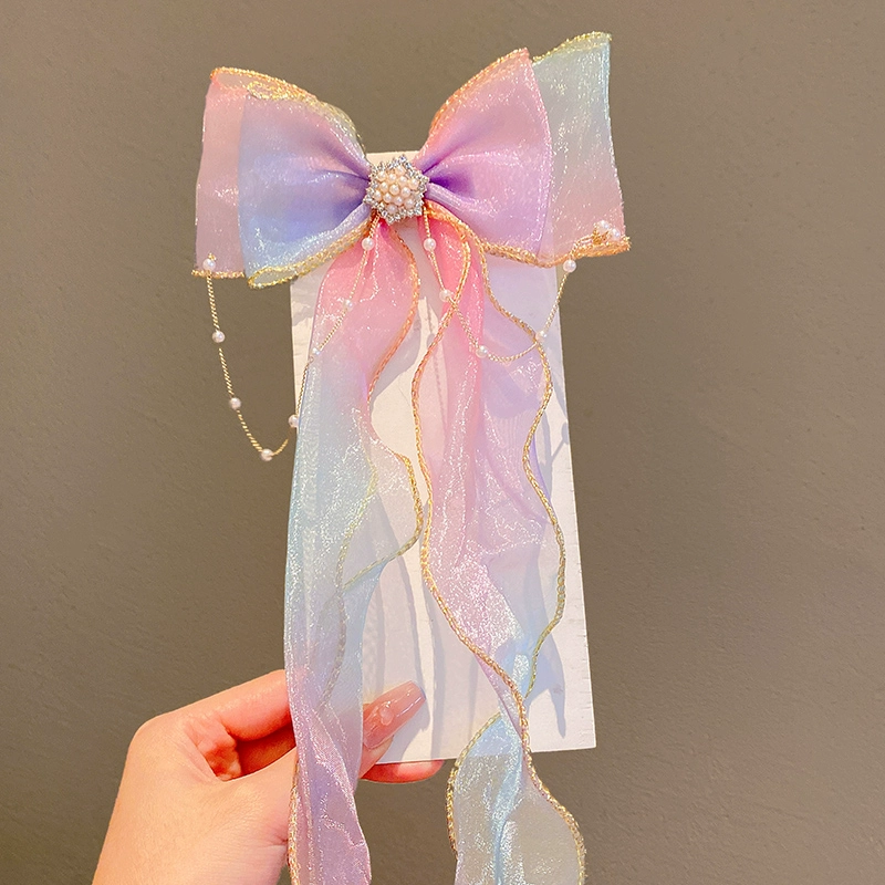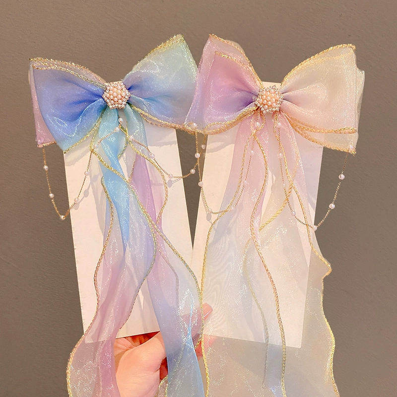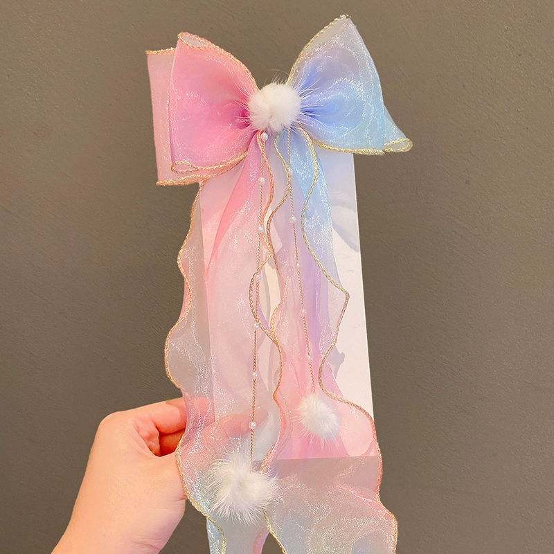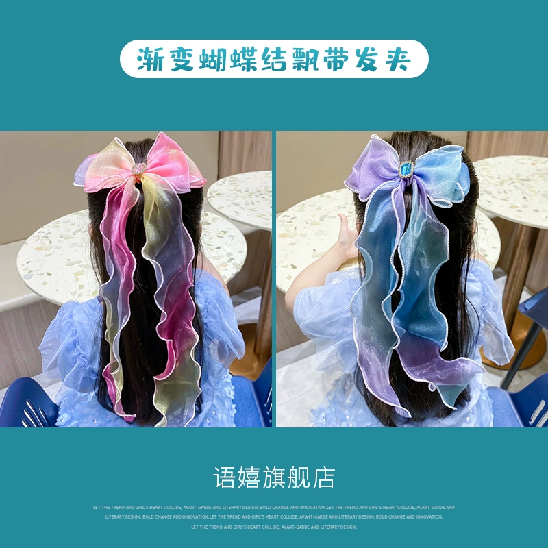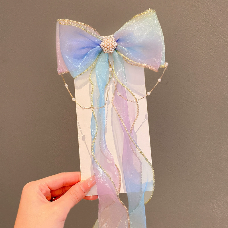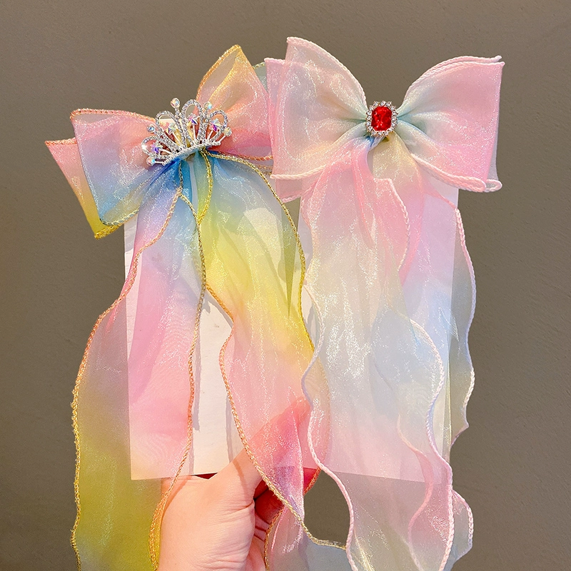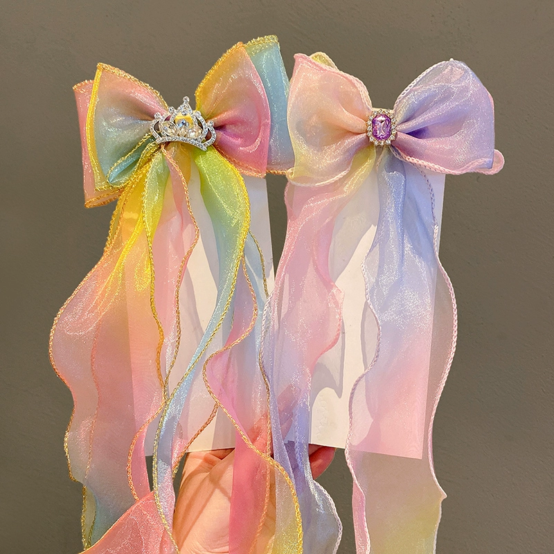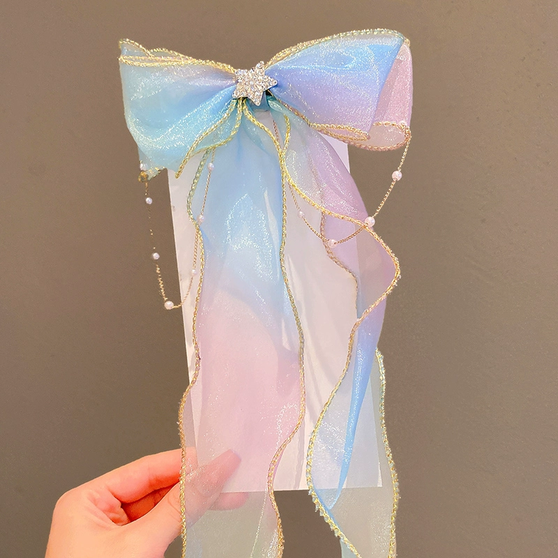 Children's bow headdress ponytail ice and snow ribbon braided mesh hairpin Princess Elsa hair accessories girls' hairband